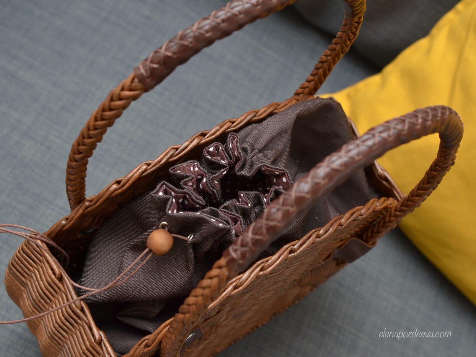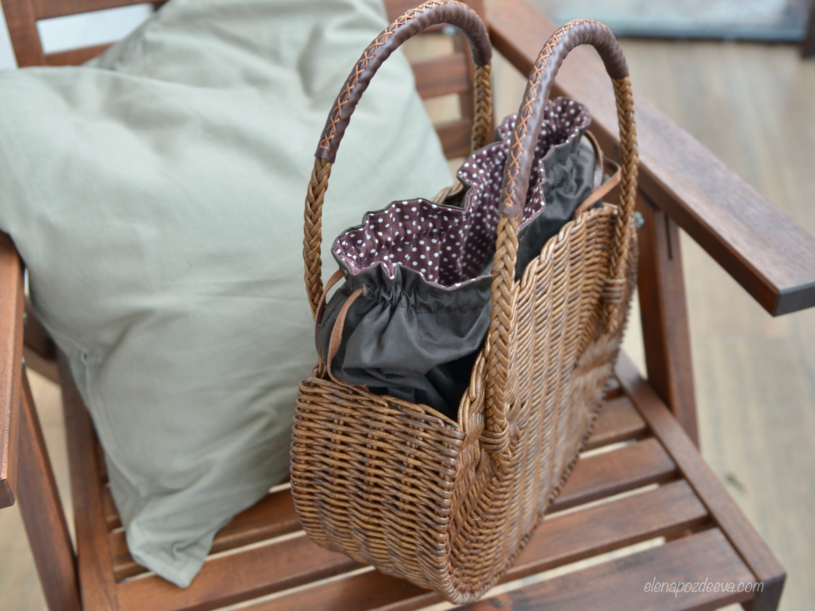Сумочка с внутренним двусторонним чехлом, затягивающимся на шнурок