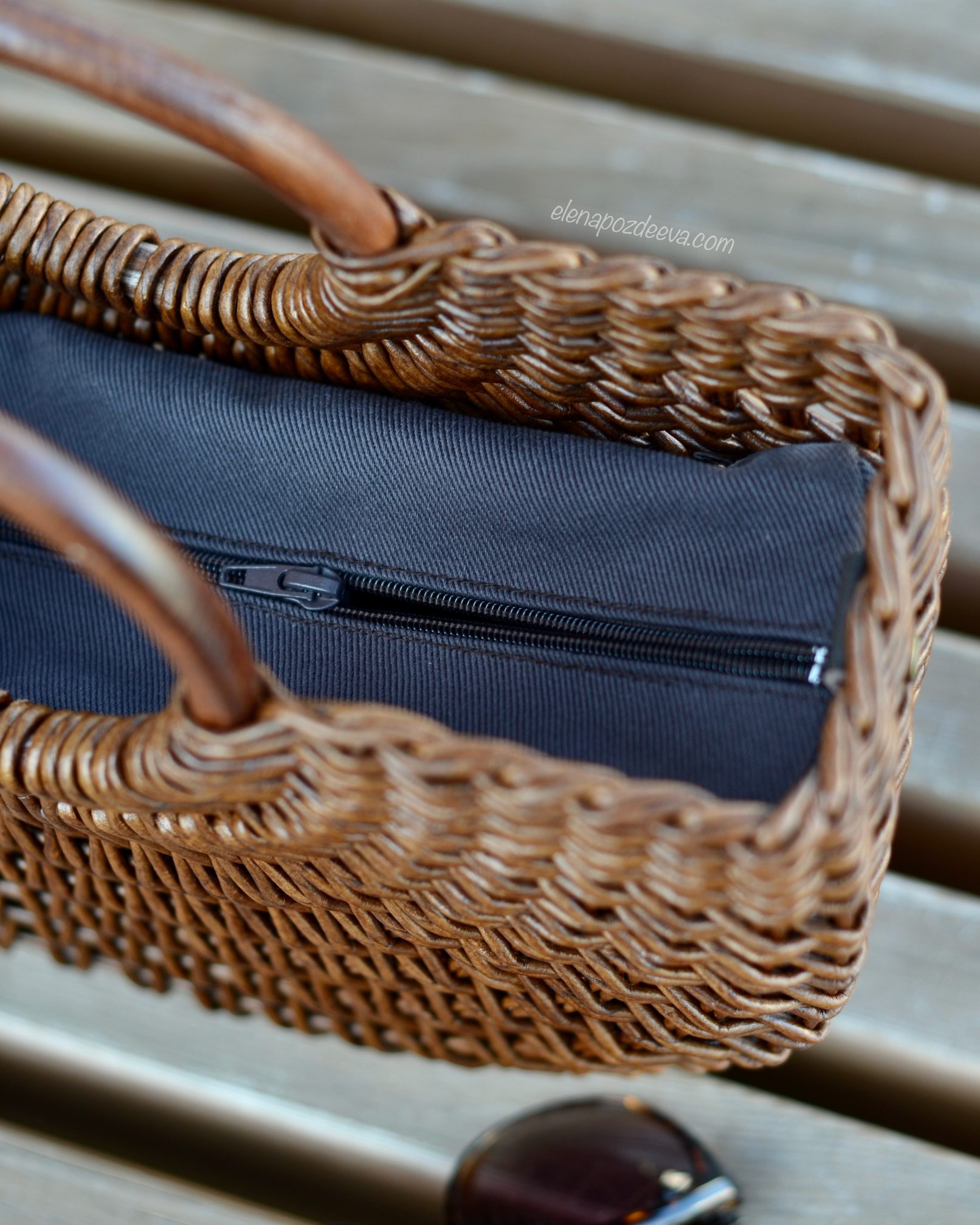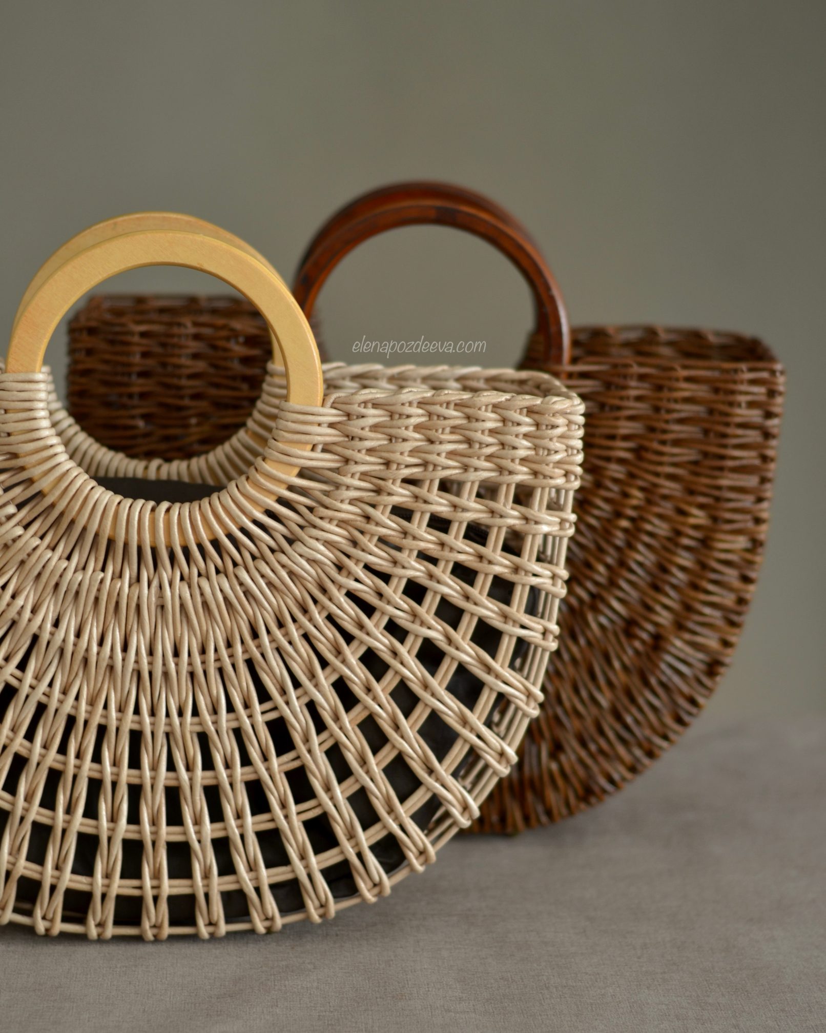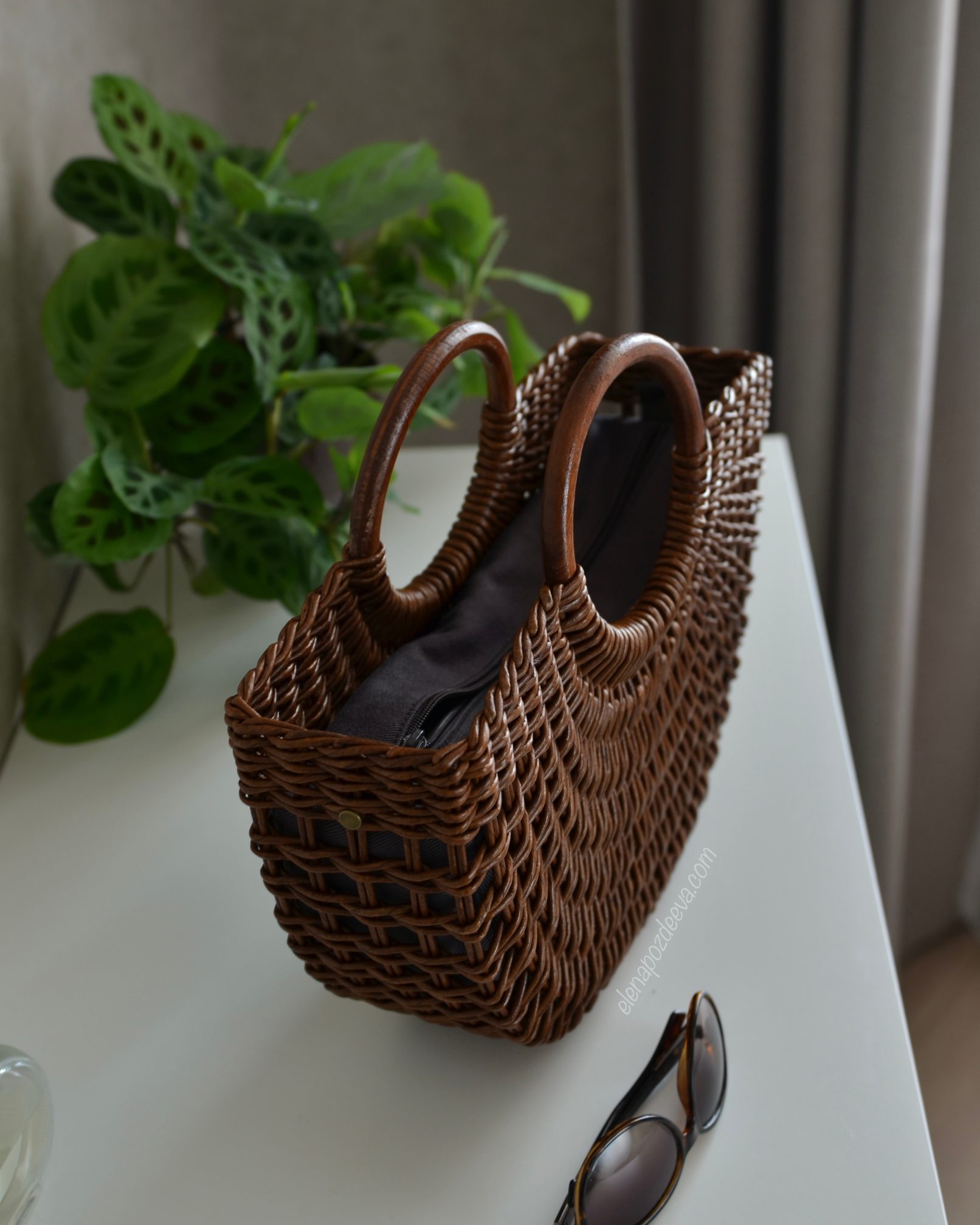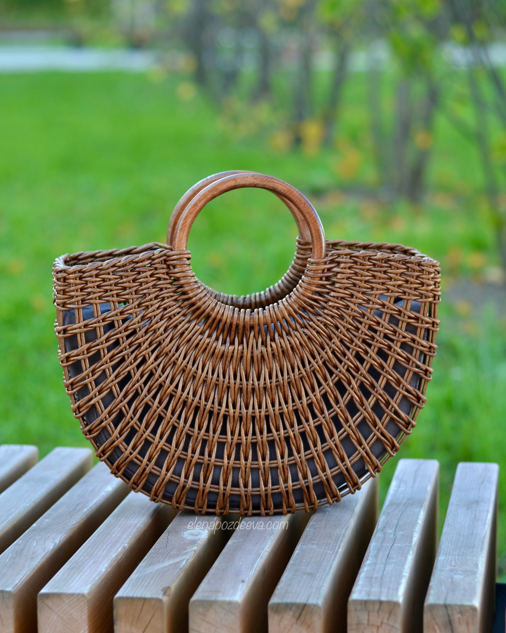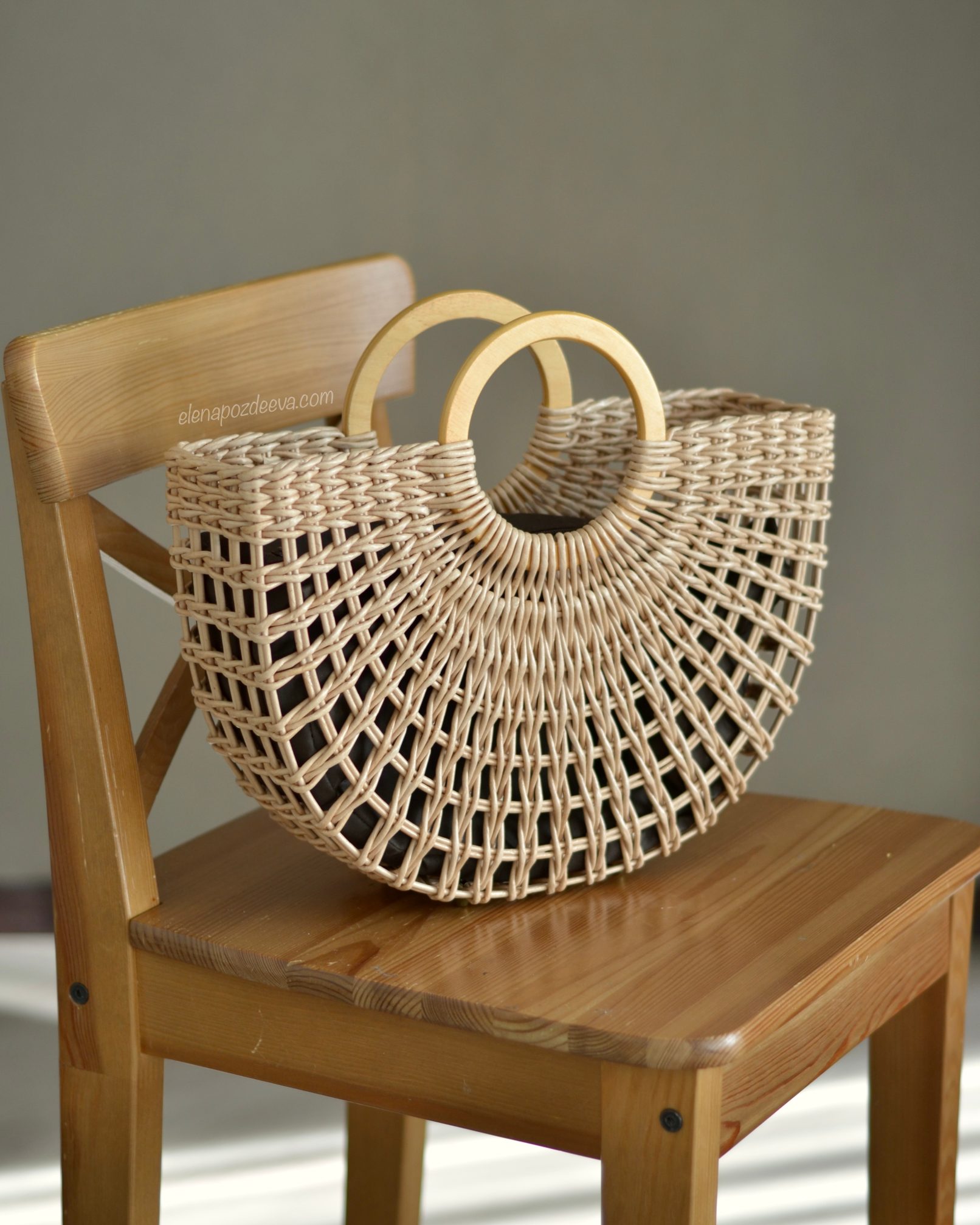 Материалы: имитация лозы, водная морилка, акриловый лак, деревянные ручки, чехол из хлопковой ткани, металлические ножки