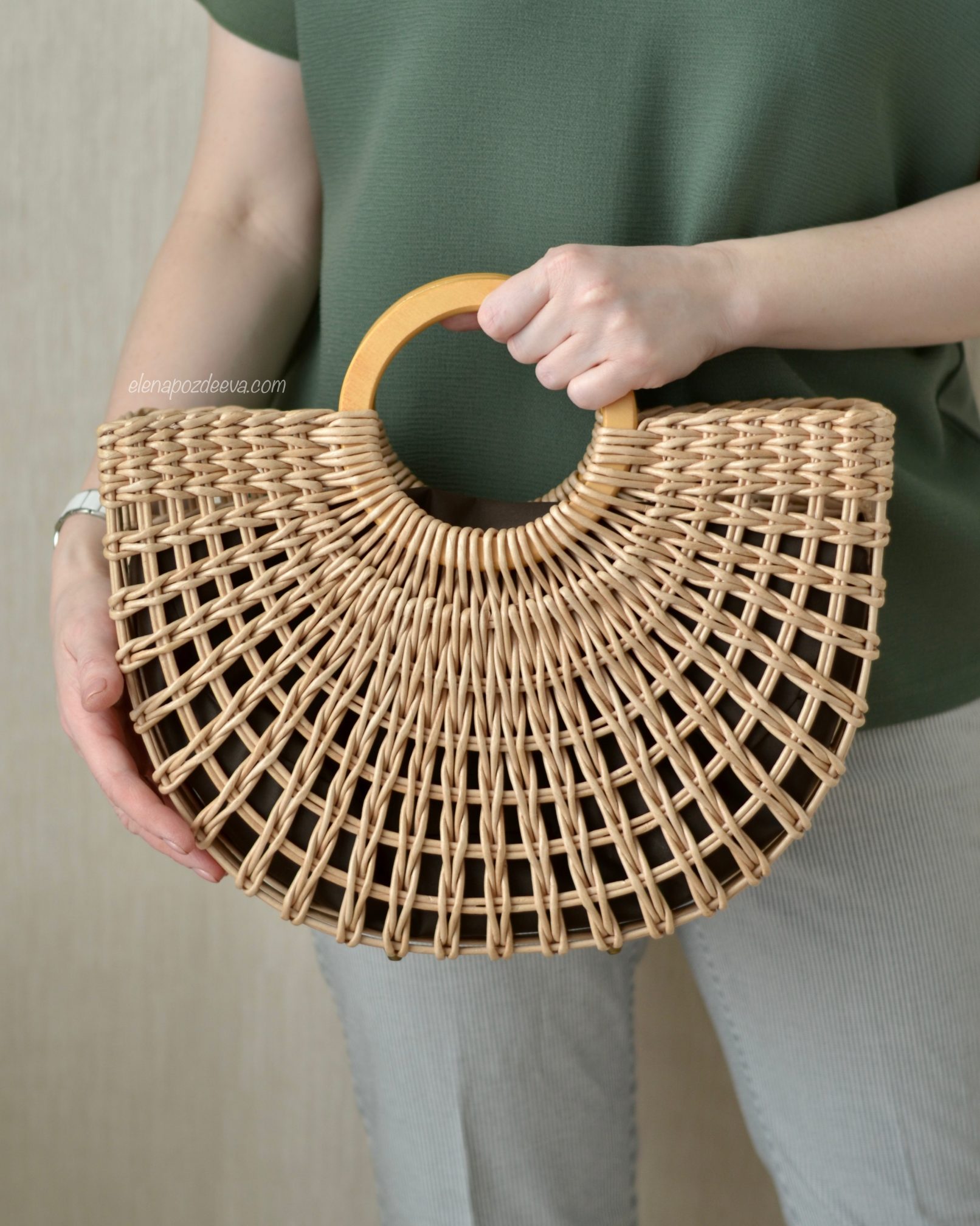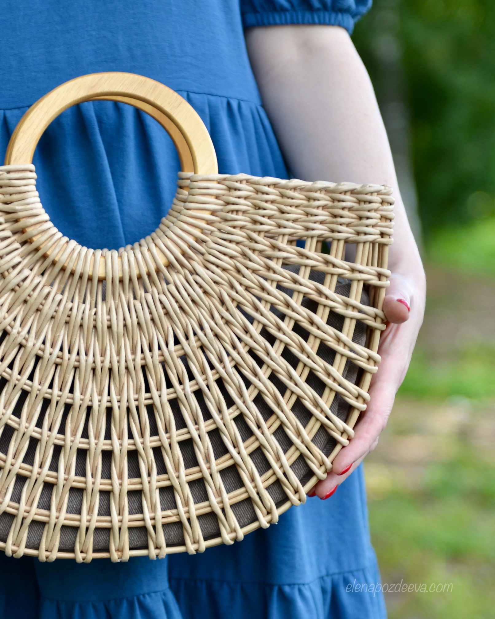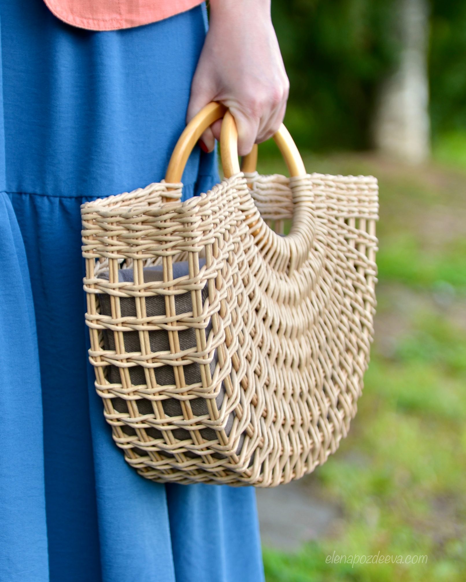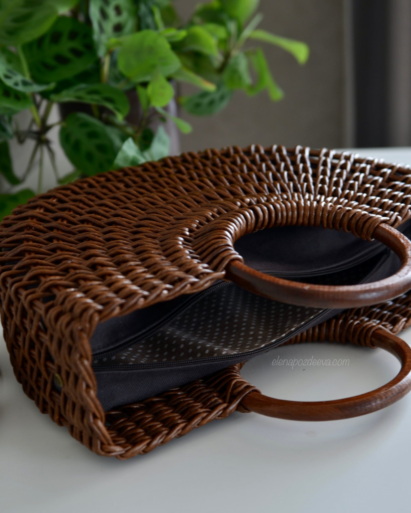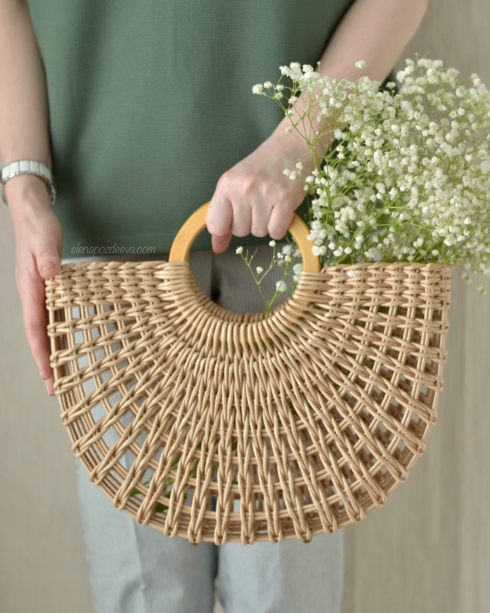 Материалы: имитация лозы, водная морилка, акриловый лак, деревянные ручки, чехол из хлопковой ткани, металлические ножки