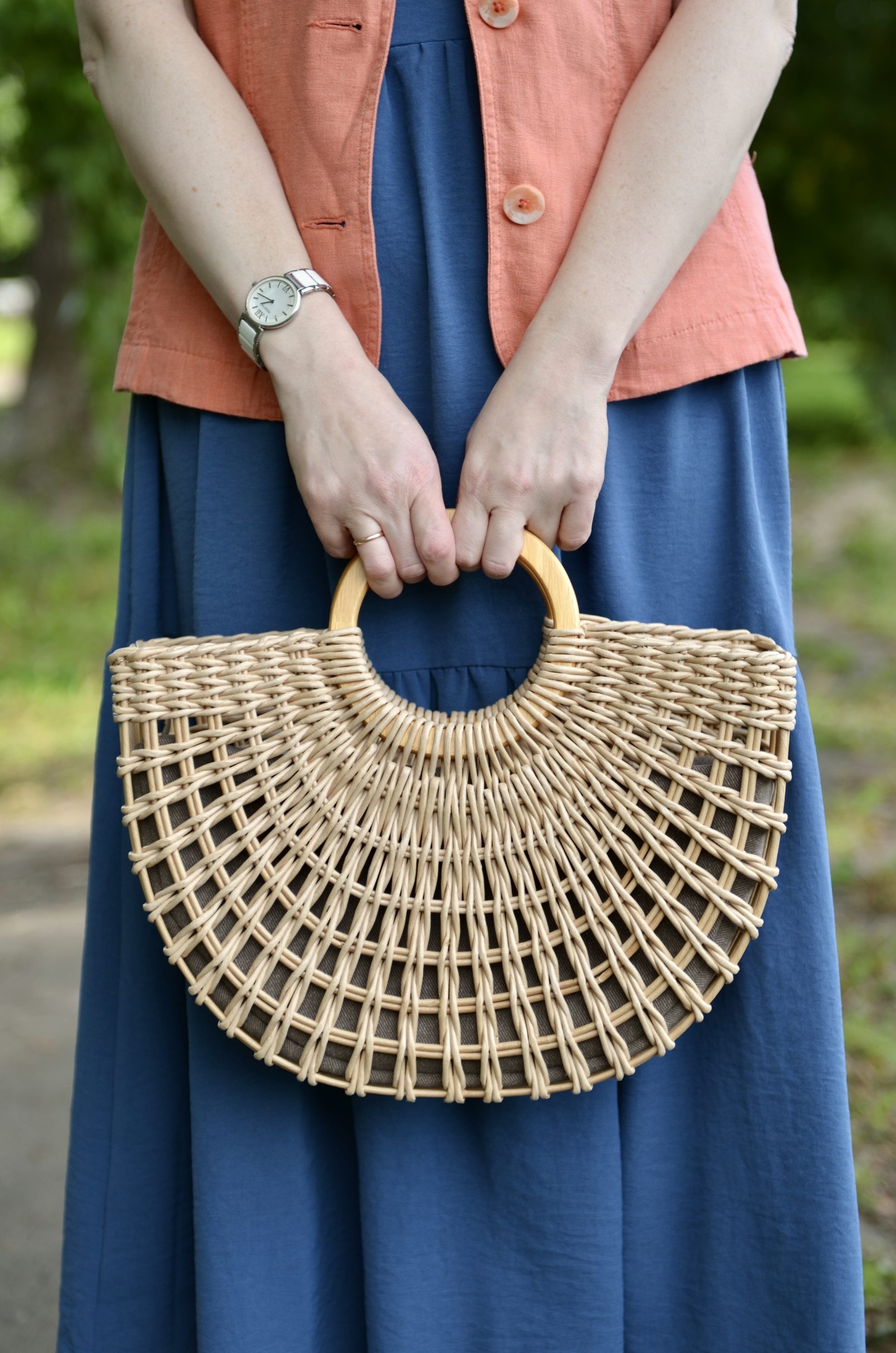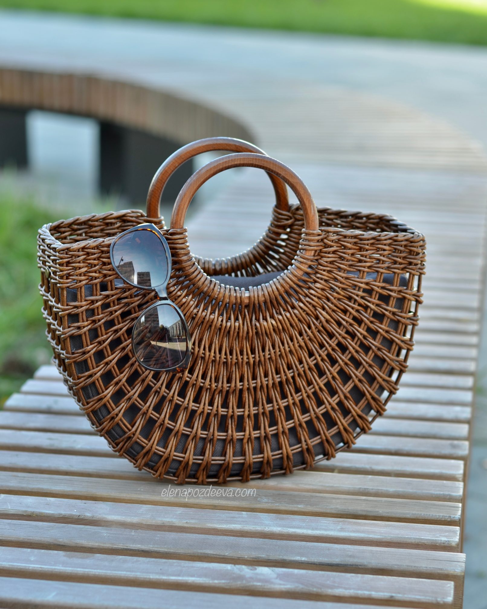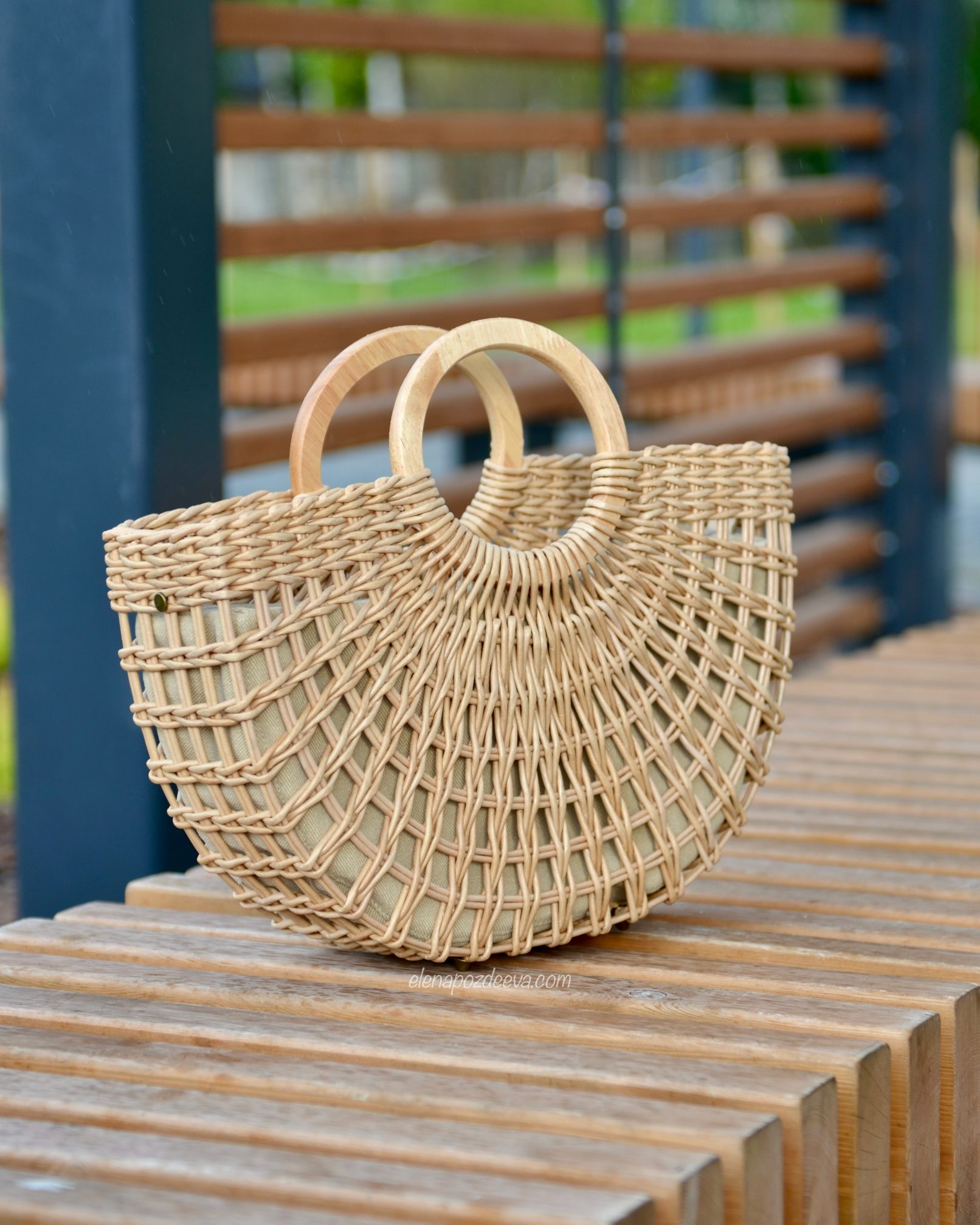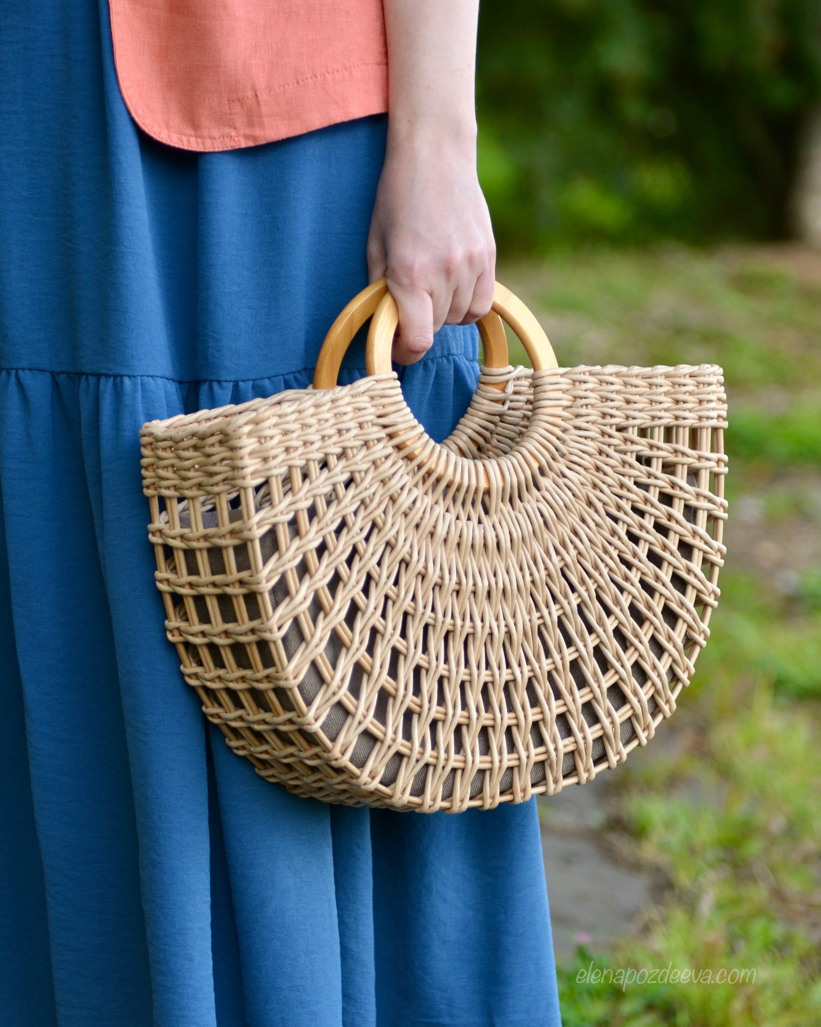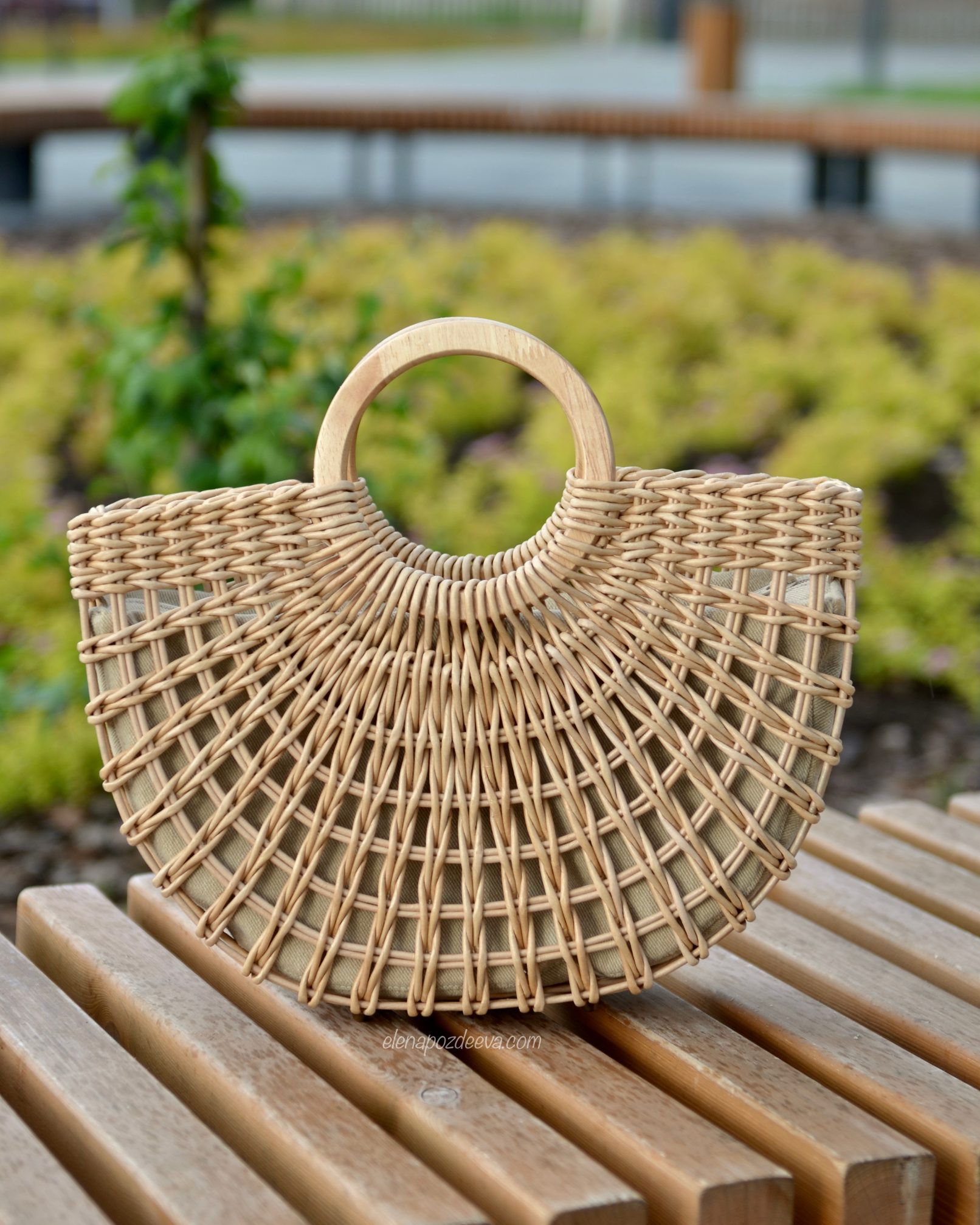 Материалы: имитация лозы, водная морилка, акриловый лак, деревянные ручки, чехол из хлопковой ткани, металлические ножки