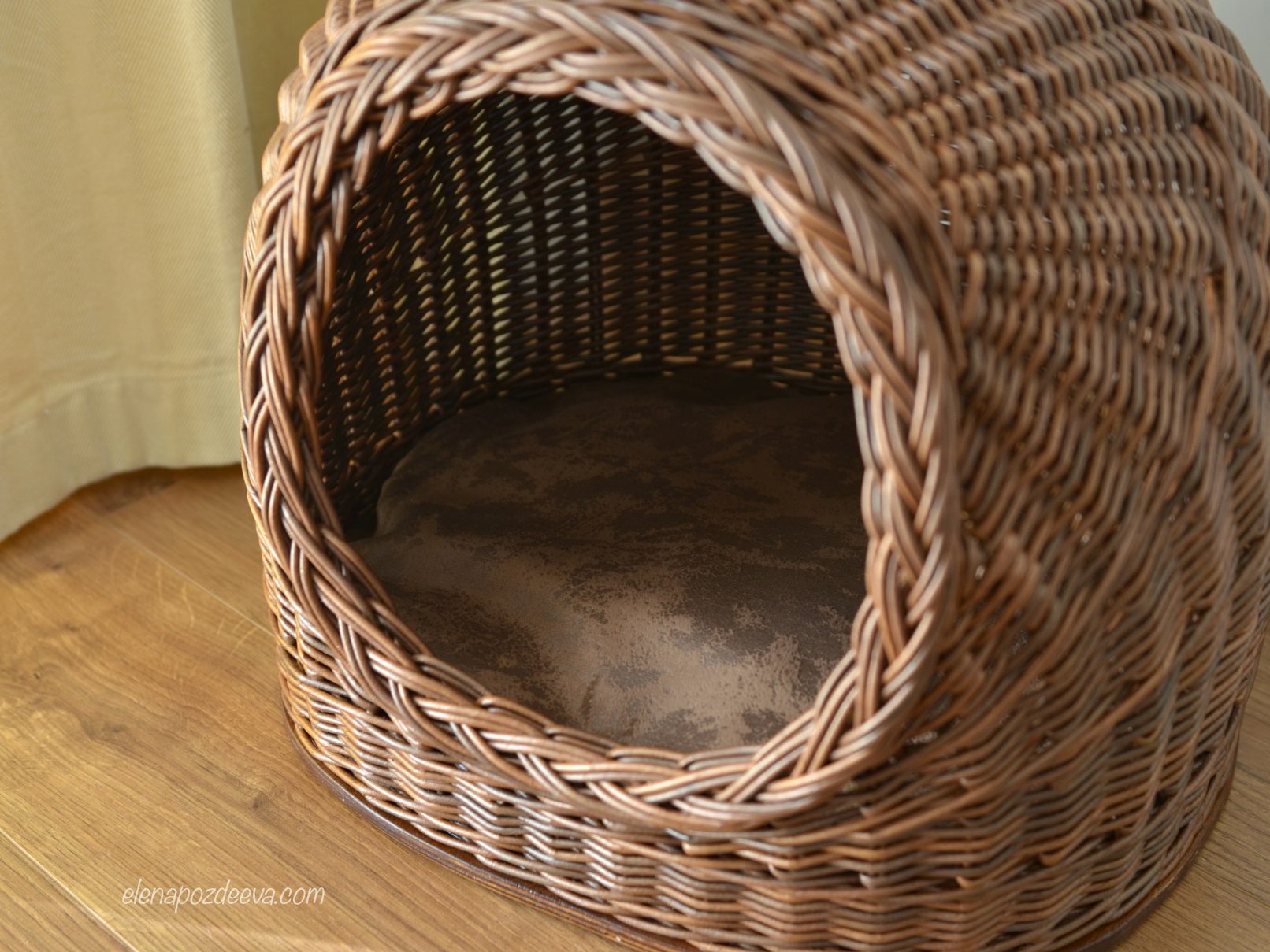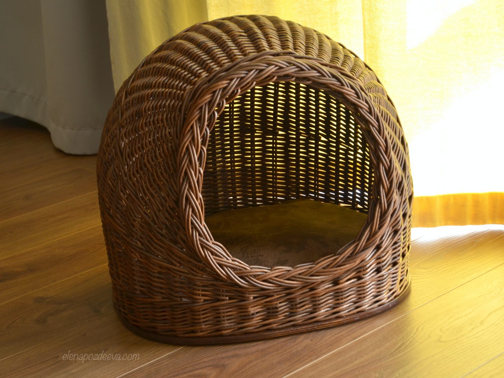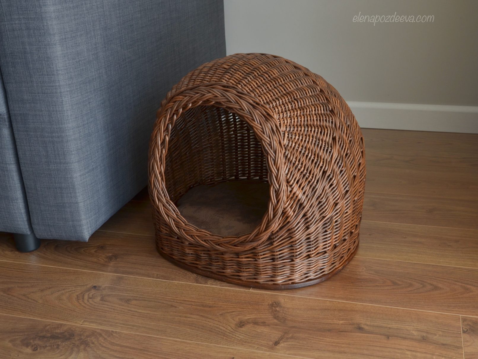 Этот плетеный домик был выполнен на заказ для собаки породы померанский шпиц, но вполне подойдет и для кошки
