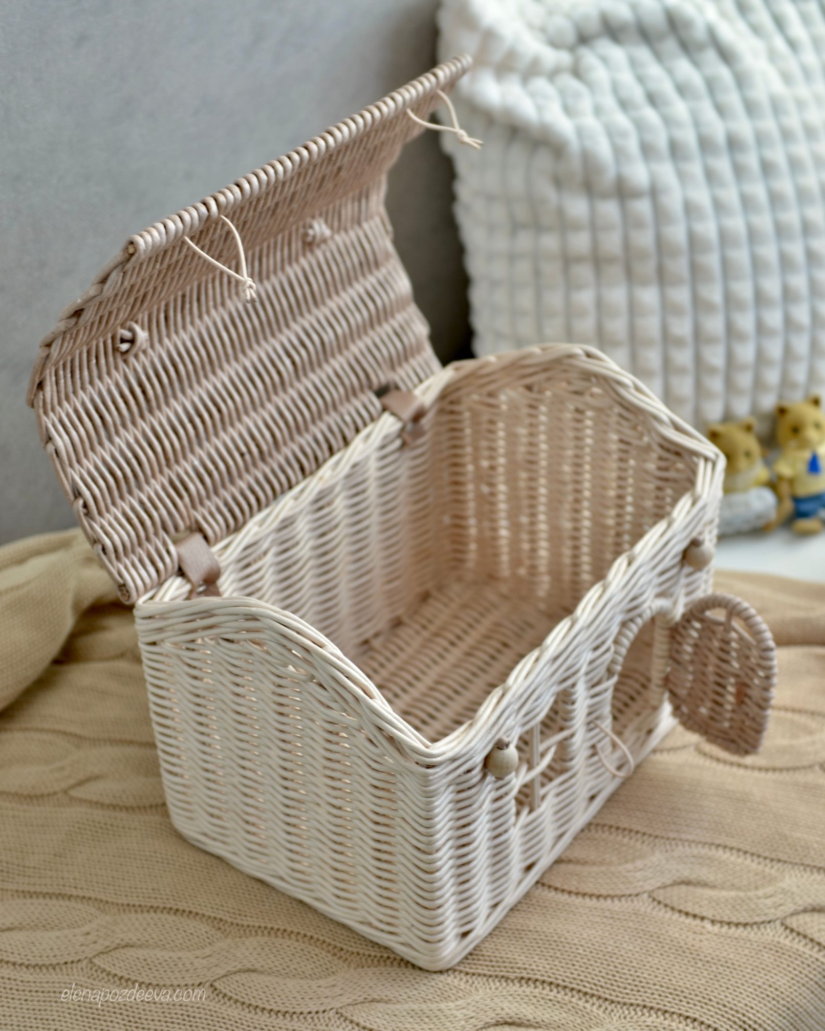Корзина с откидывающейся крышкой и ручкой предназначена для декора детской комнаты и для игр, а также для хранения мелочей