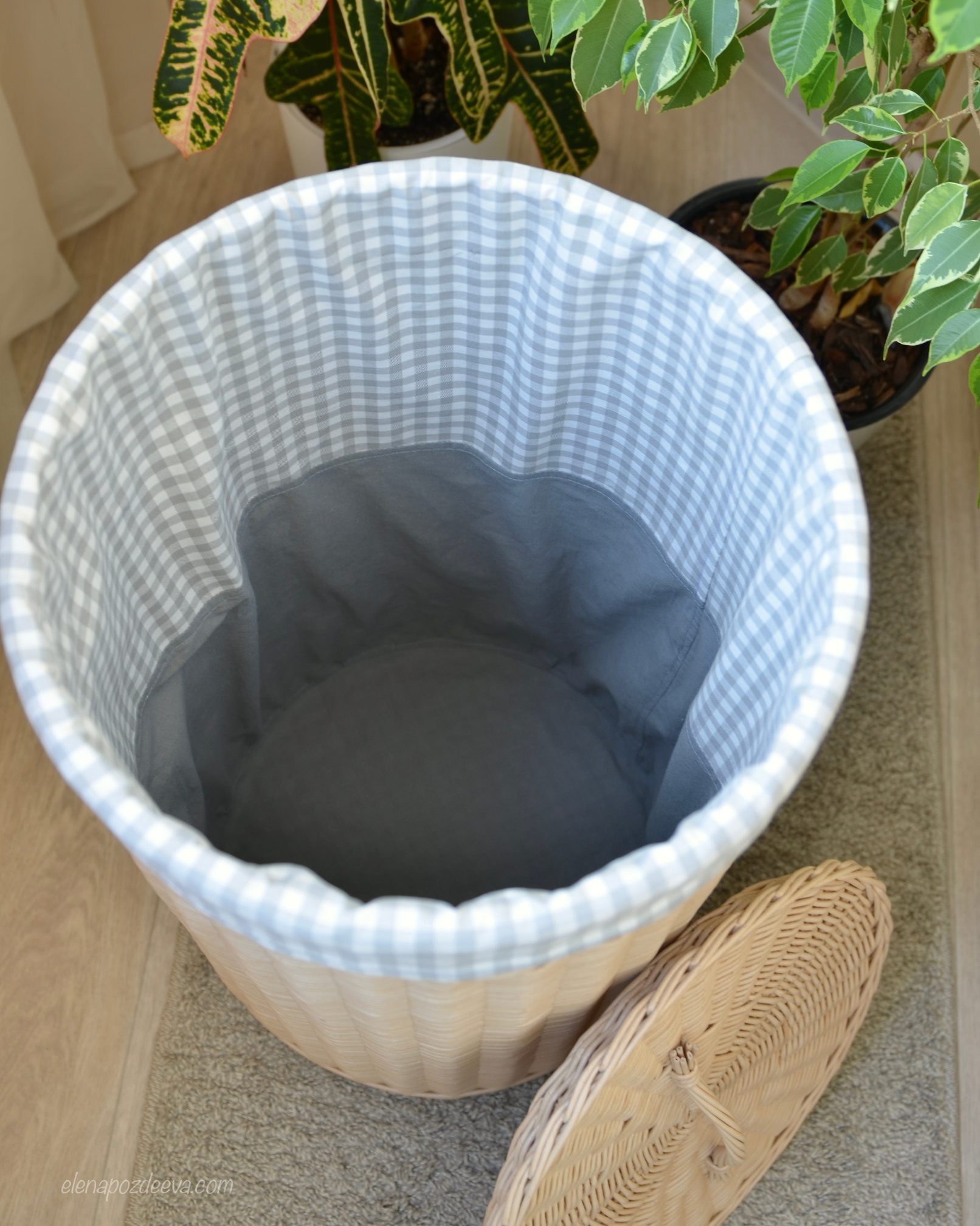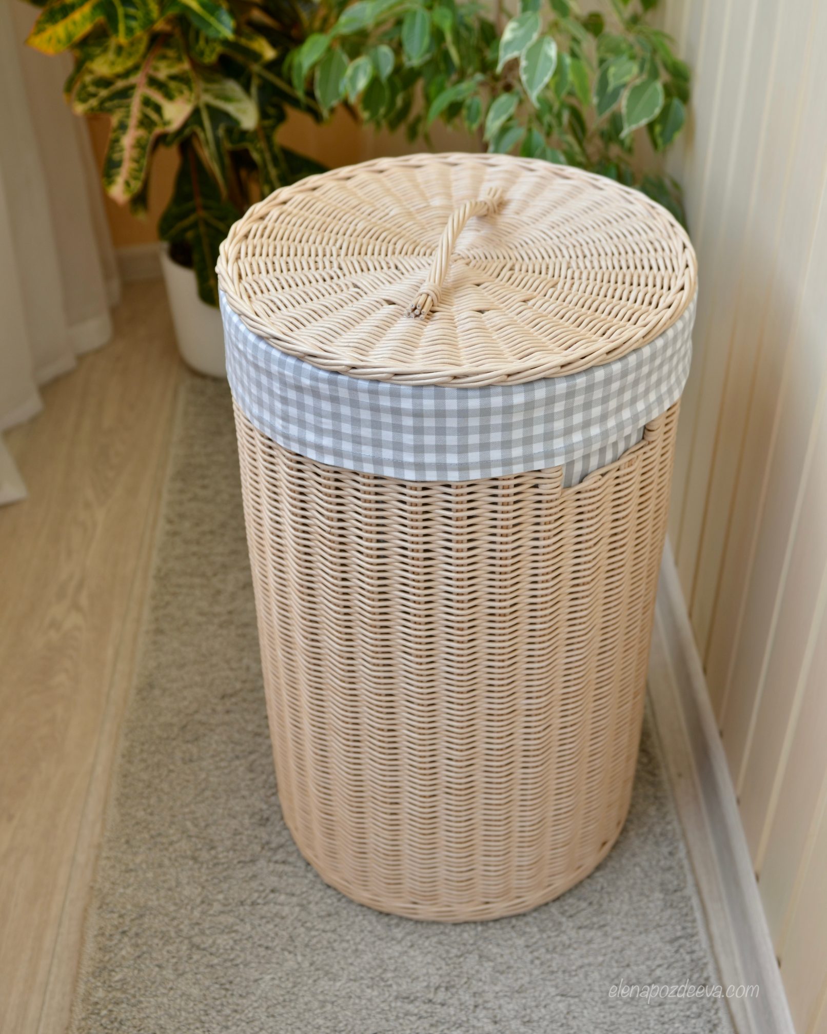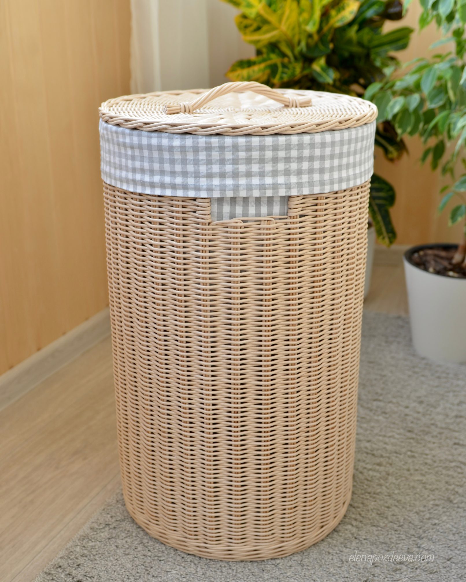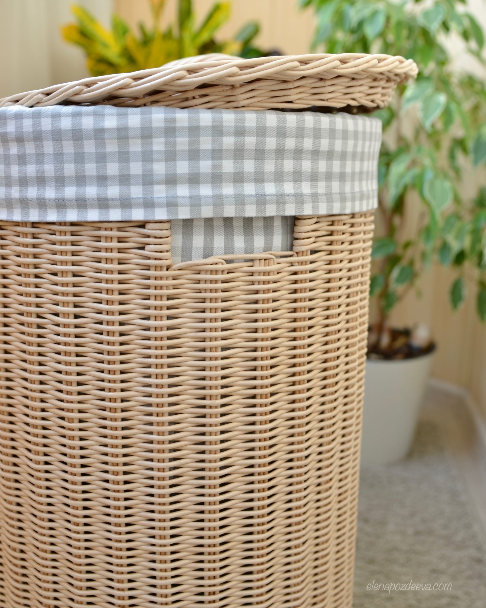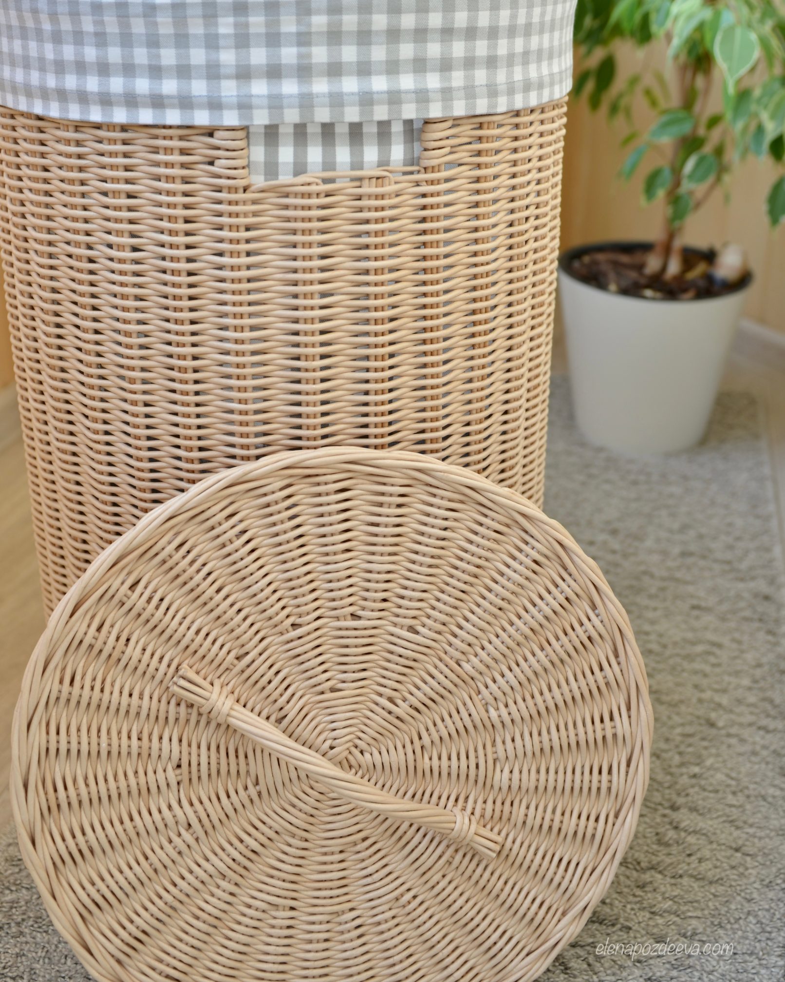 Материалы: имитация лозы, металлическая фурнитура, водная морилка для дерева, акриловый лак, хлопковая и льняная ткань