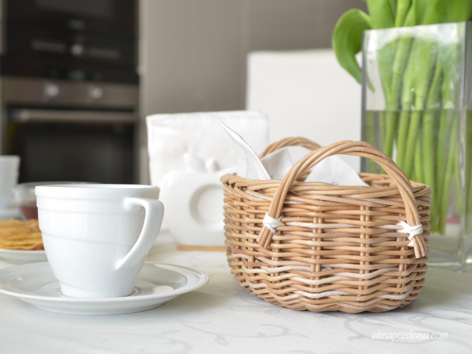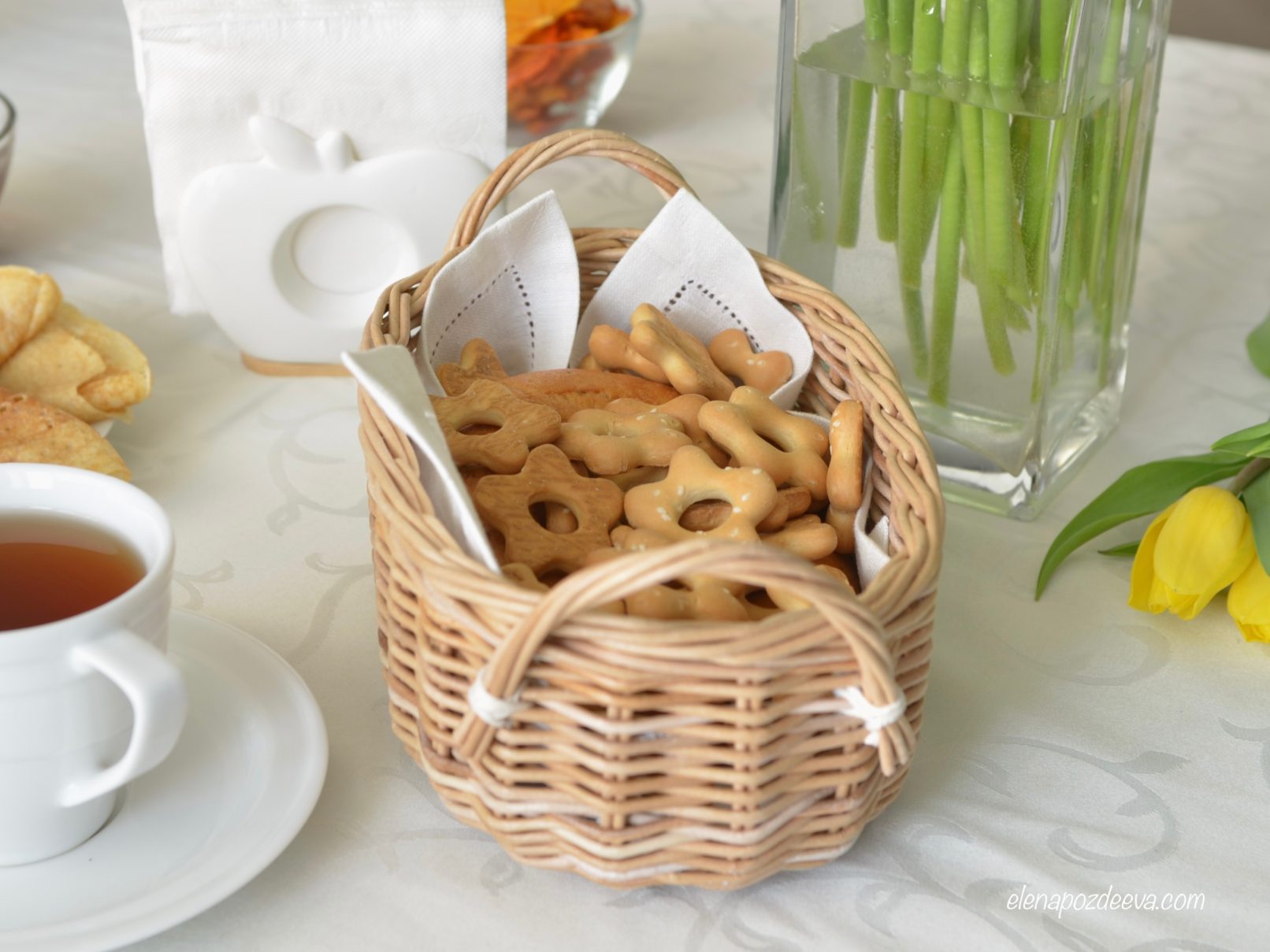 Небольшая корзинка овальной формы с витыми ручками. Для подачи на стол печенья, конфет, хлеба, или для хранения мелочей
