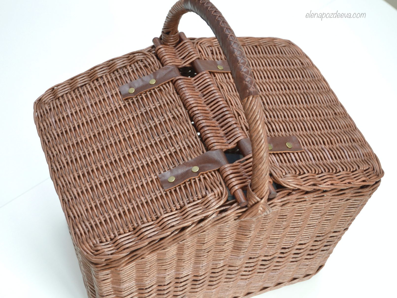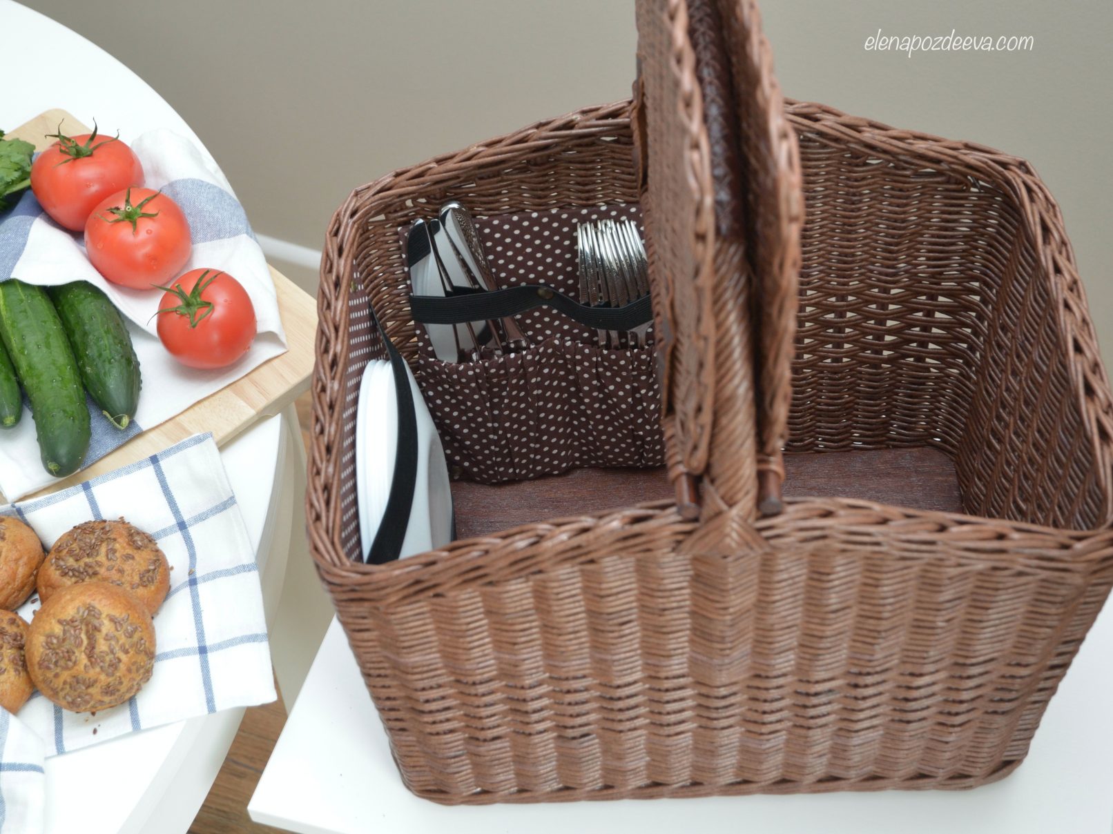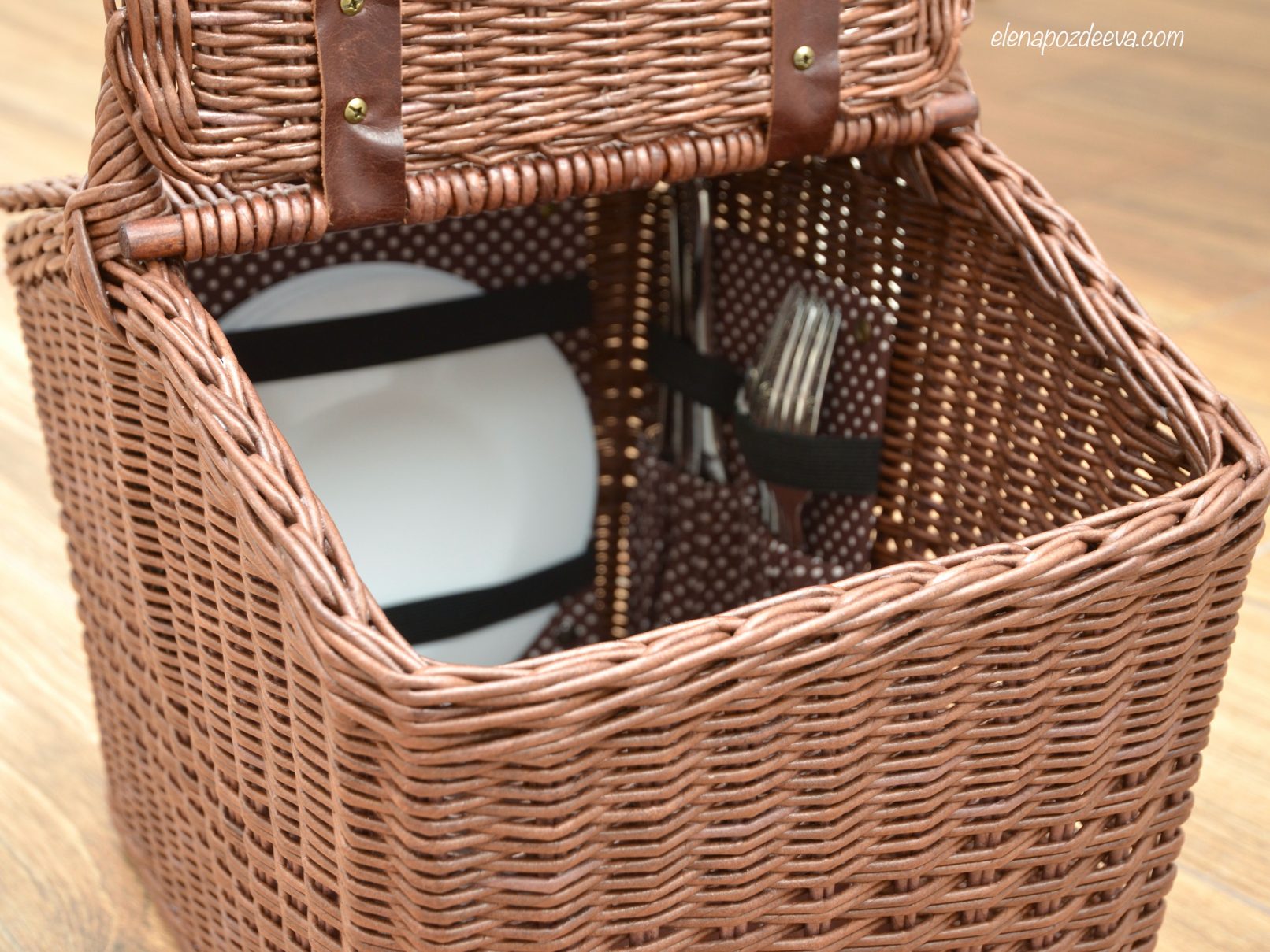Корзина для пикника для большой компании, вместительная и практичная, с внутренними держателями для столовых приборов или тарелок