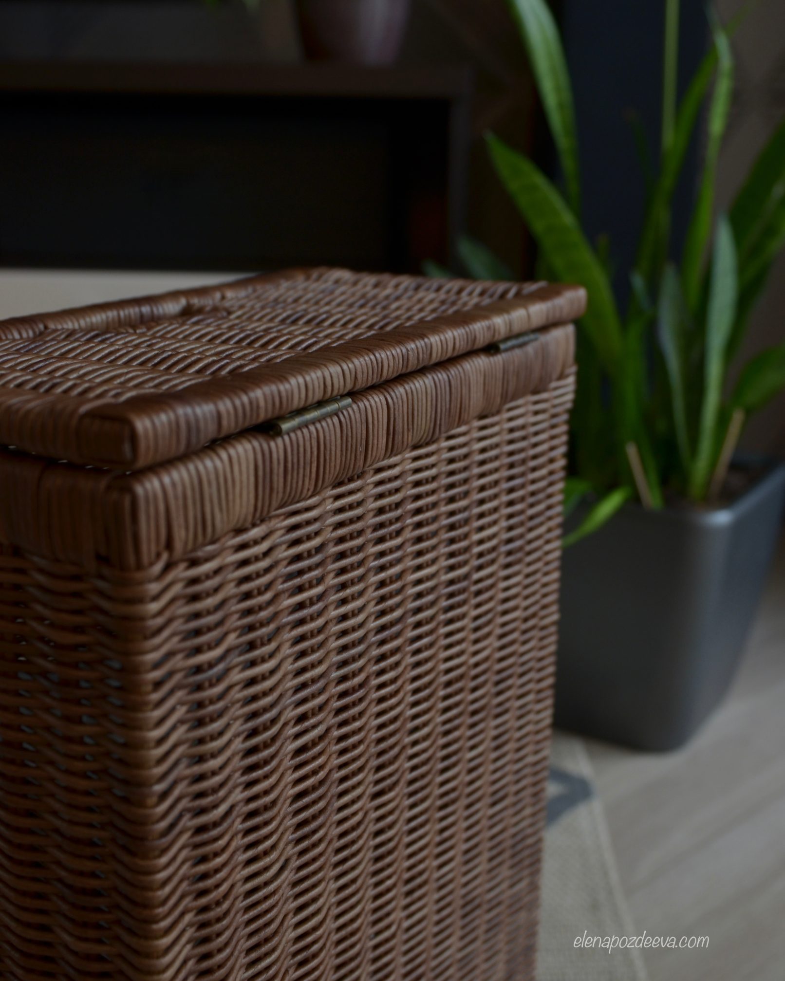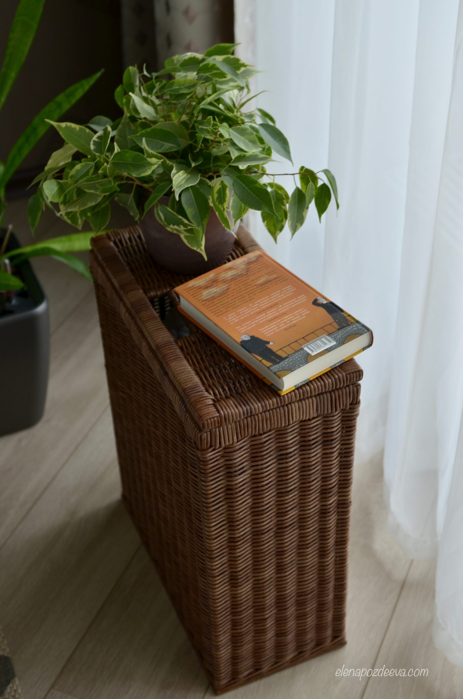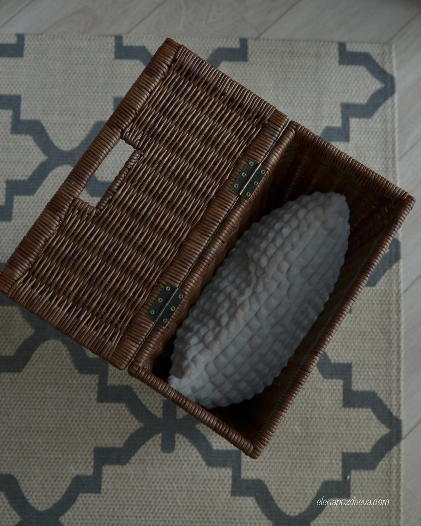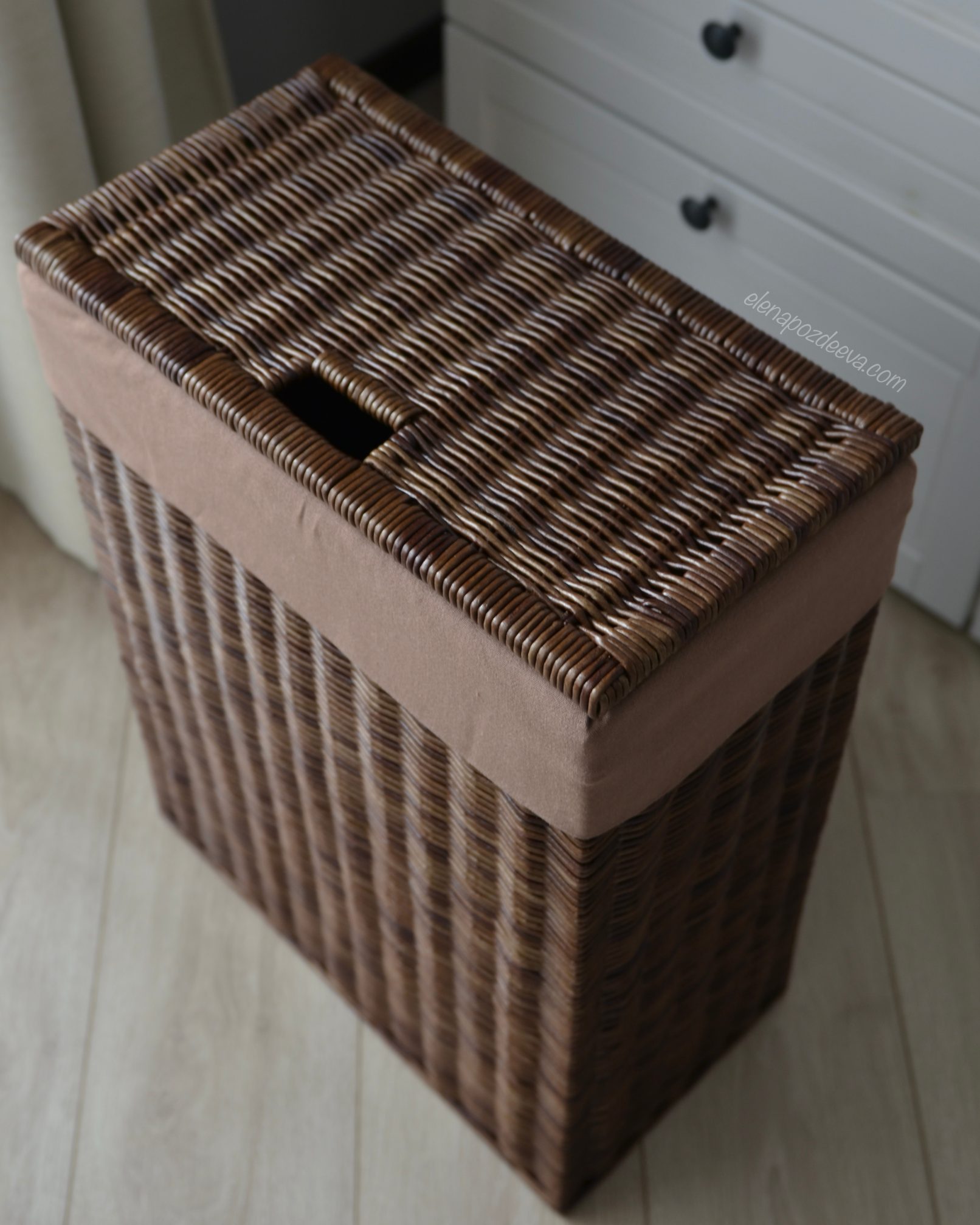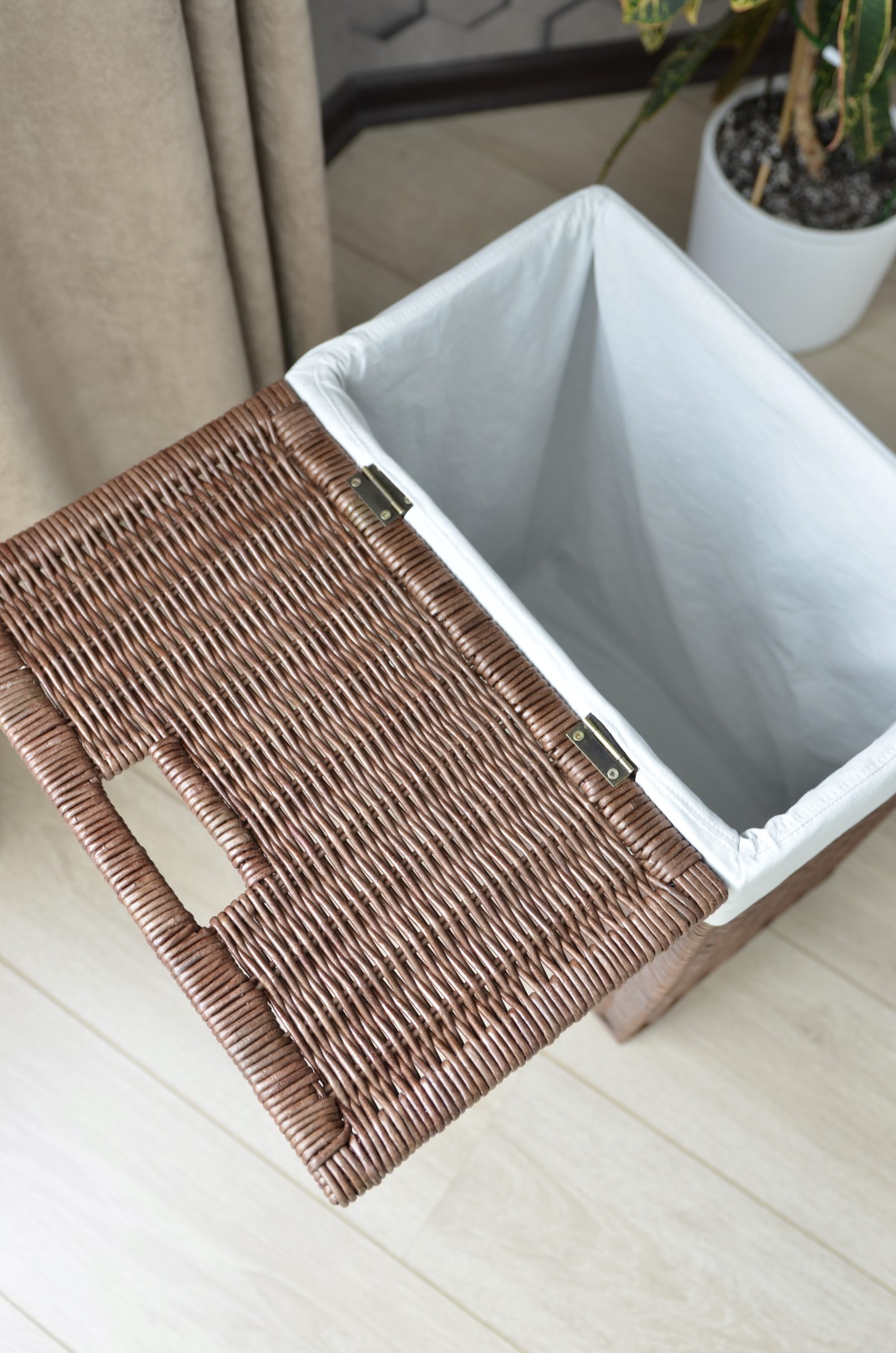 Материалы: имитация лозы, фанера, деревянный профиль, металлическая фурнитура, водная морилка для дерева, акриловый лак, хлопковая ткань, поролон