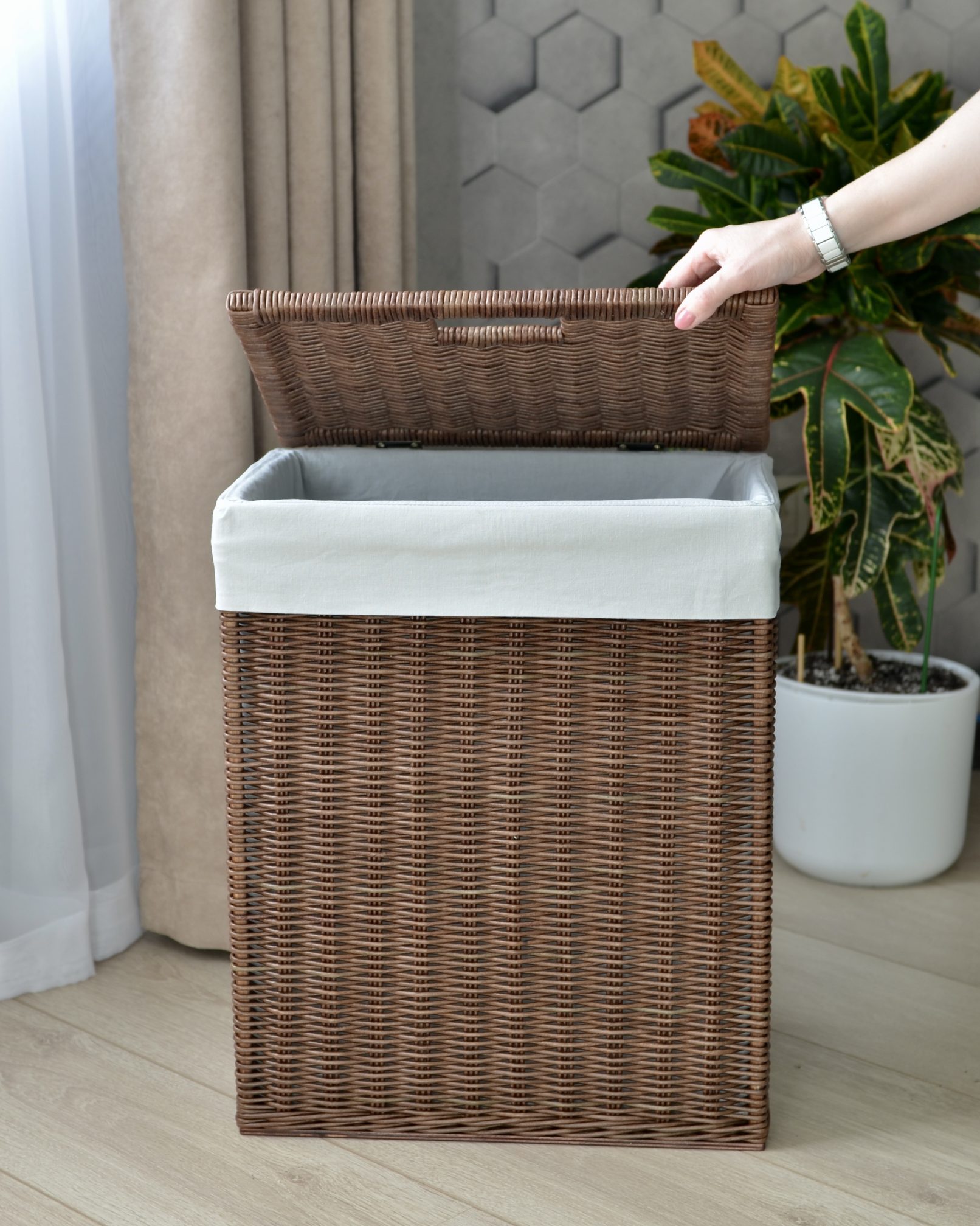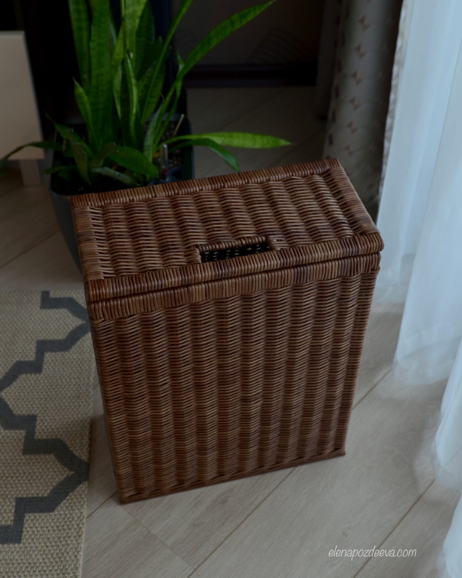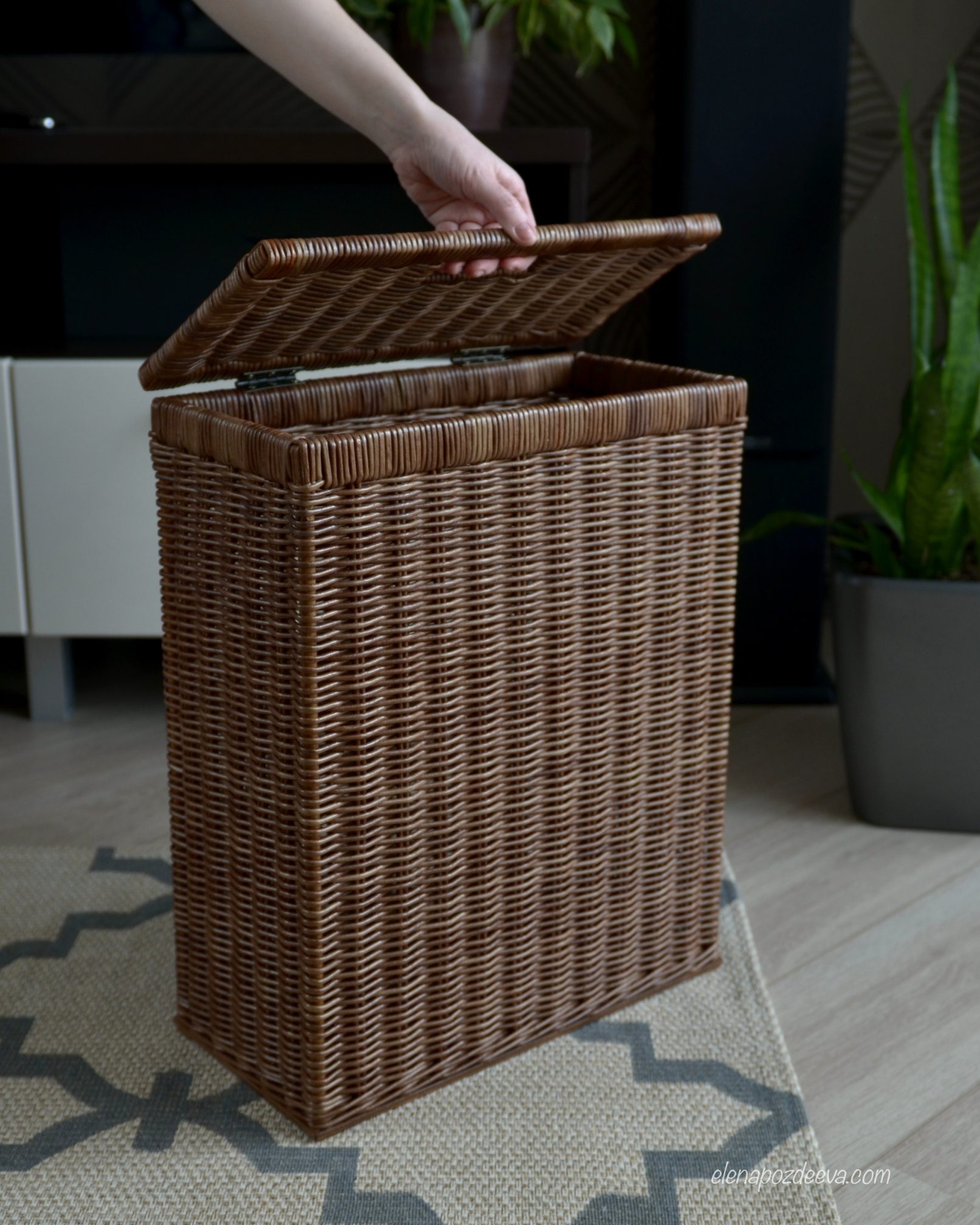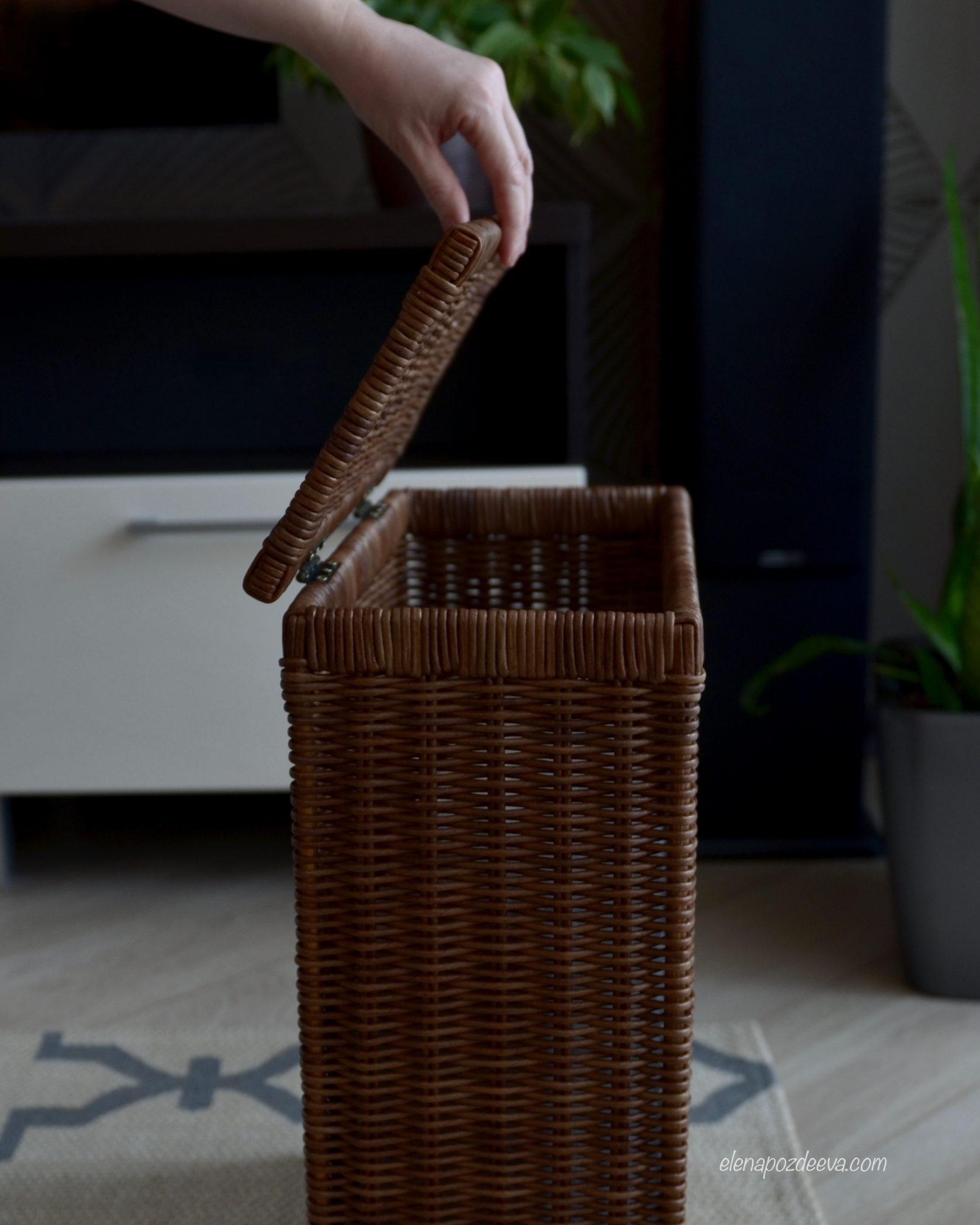 Материалы: имитация лозы, фанера, деревянный профиль, металлическая фурнитура, водная морилка для дерева, акриловый лак, хлопковая ткань, поролон