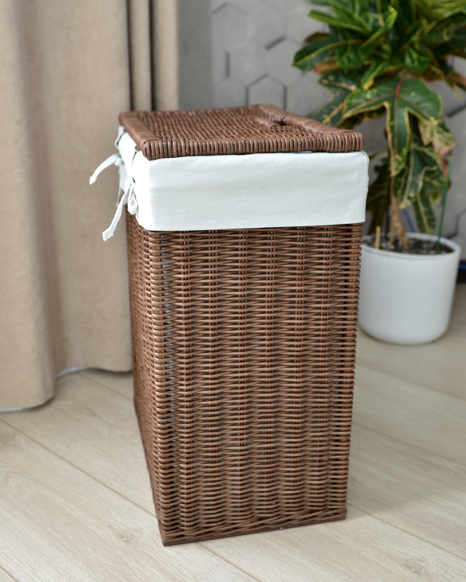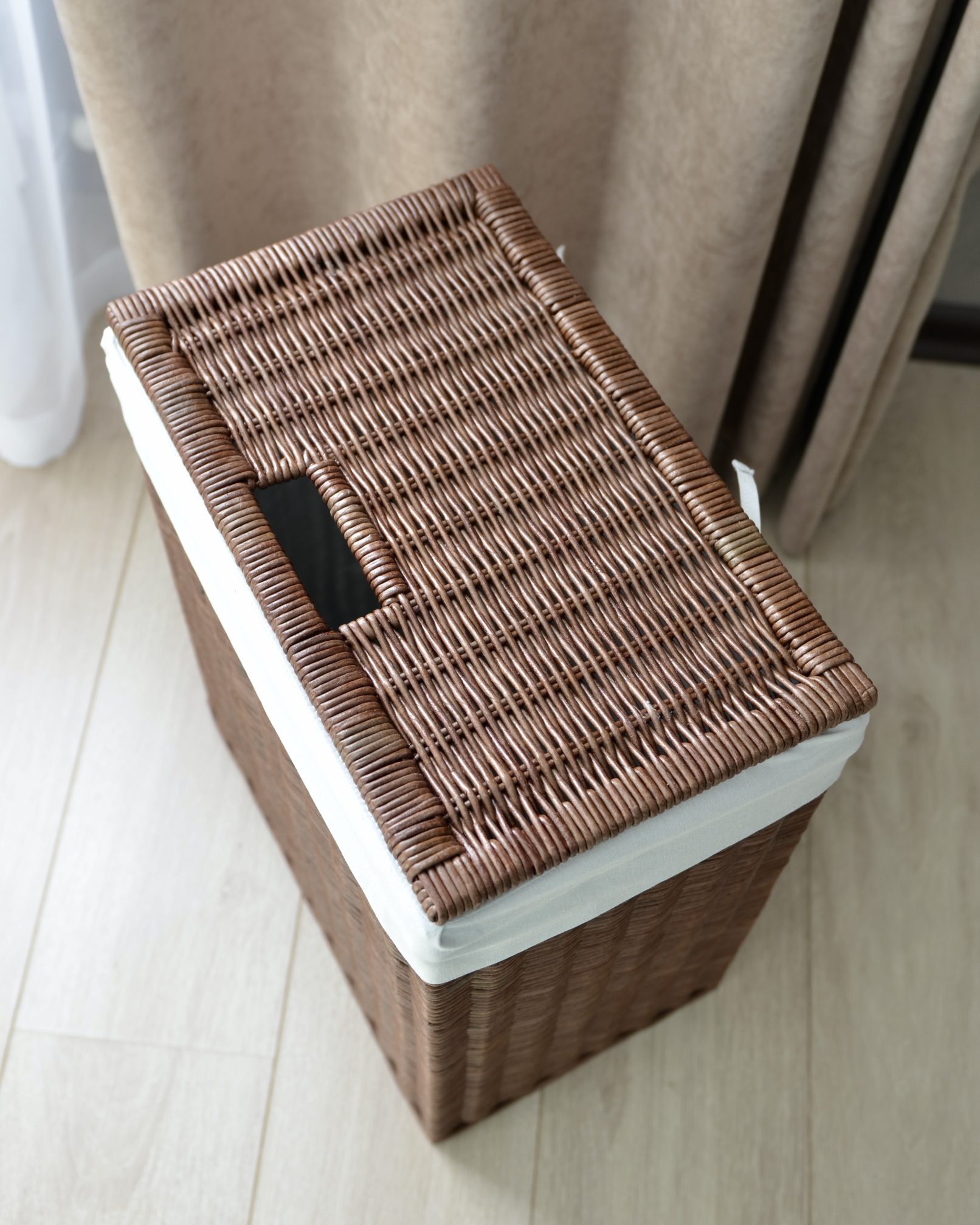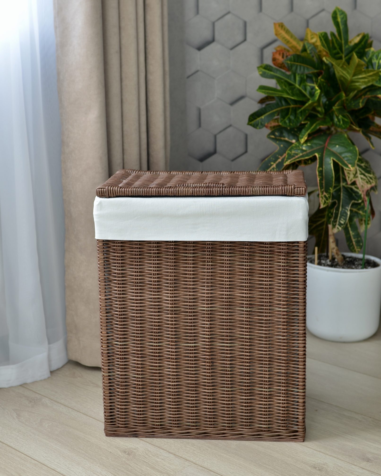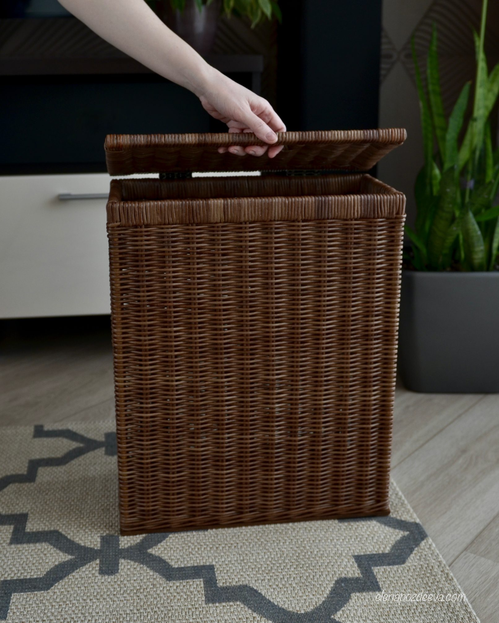 Материалы: имитация лозы, фанера, деревянный профиль, металлическая фурнитура, водная морилка для дерева, акриловый лак, хлопковая ткань, поролон