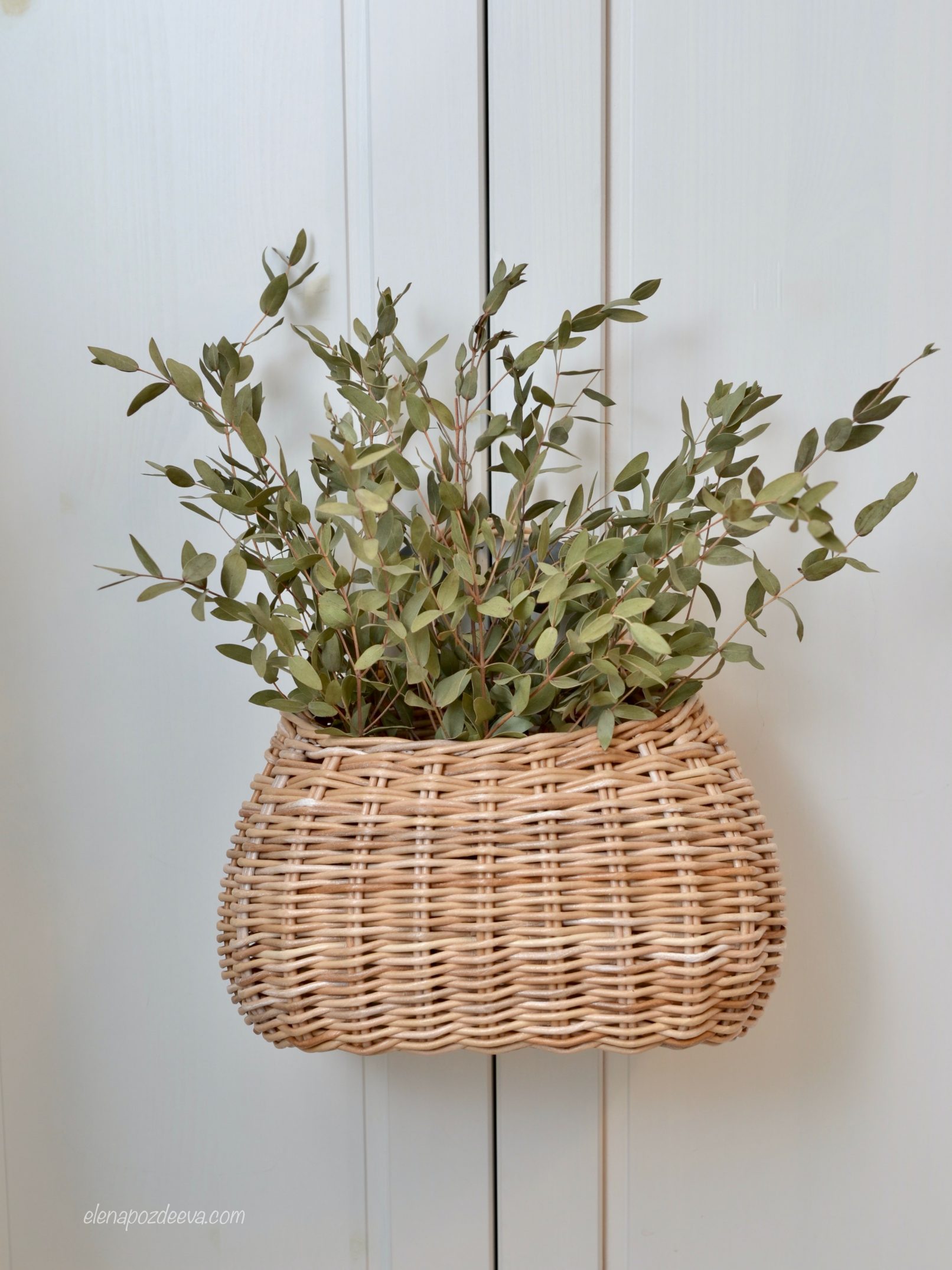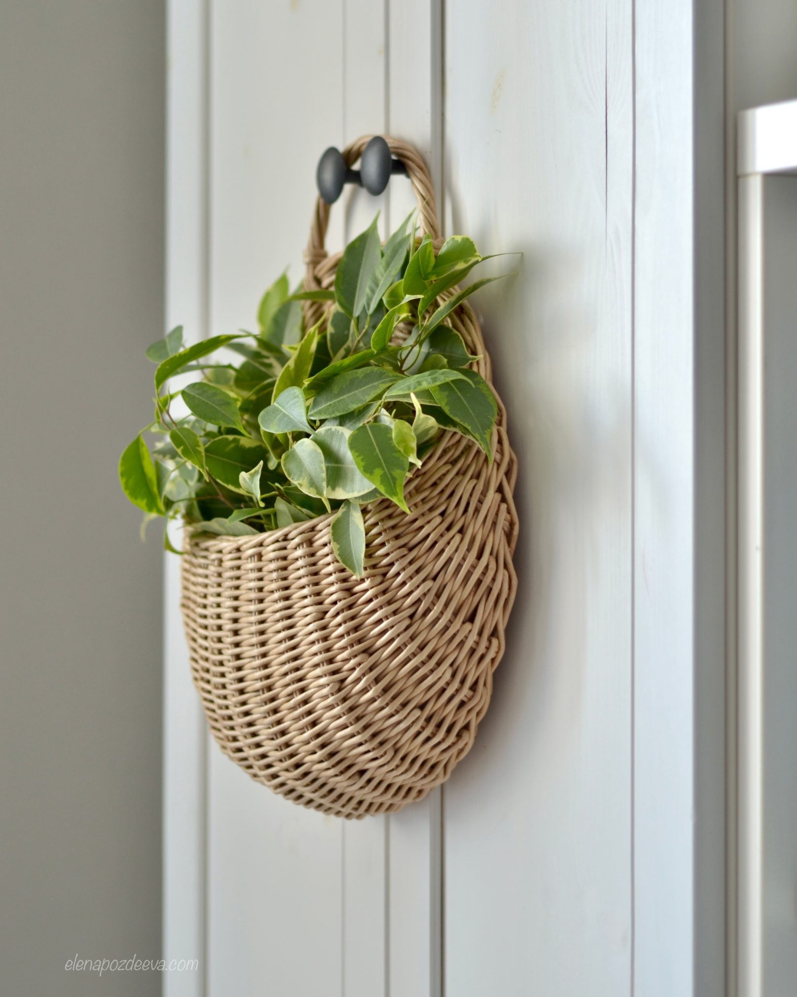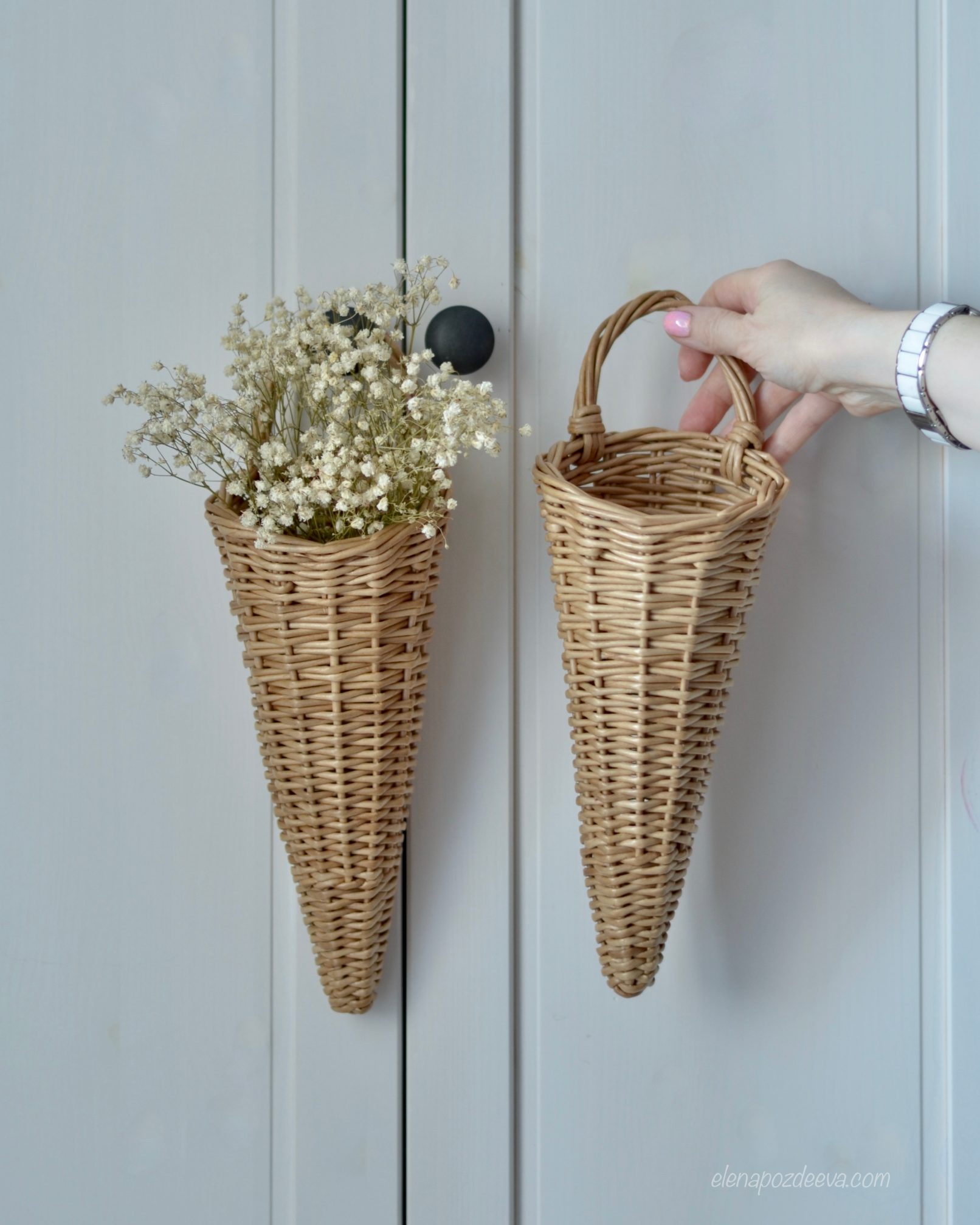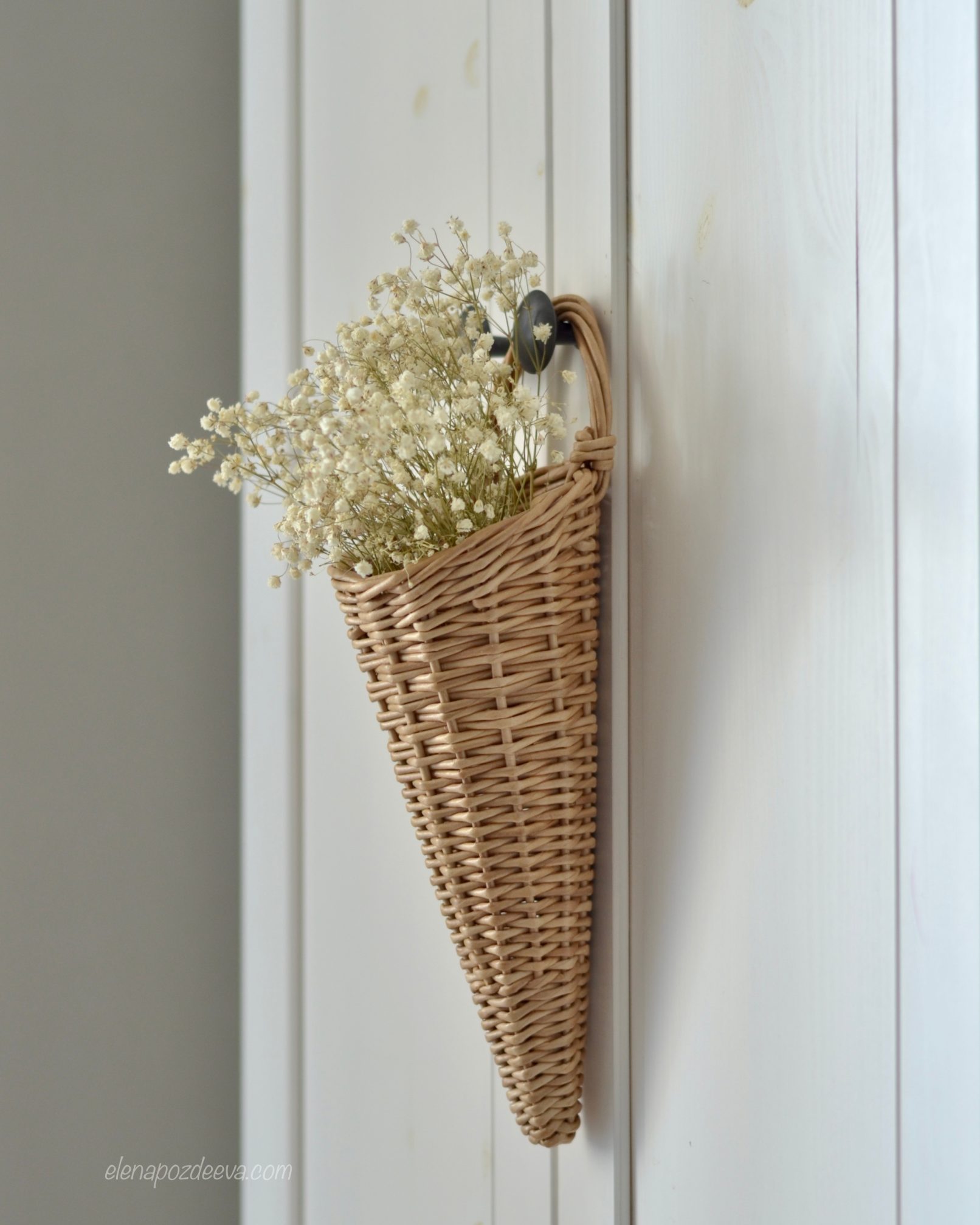 Использование такой подвесной корзины возможно в декоративных целях: например, для сухоцветов, в ванной — для расчесок и других мелочей, в детской — для игрушек и т.д.