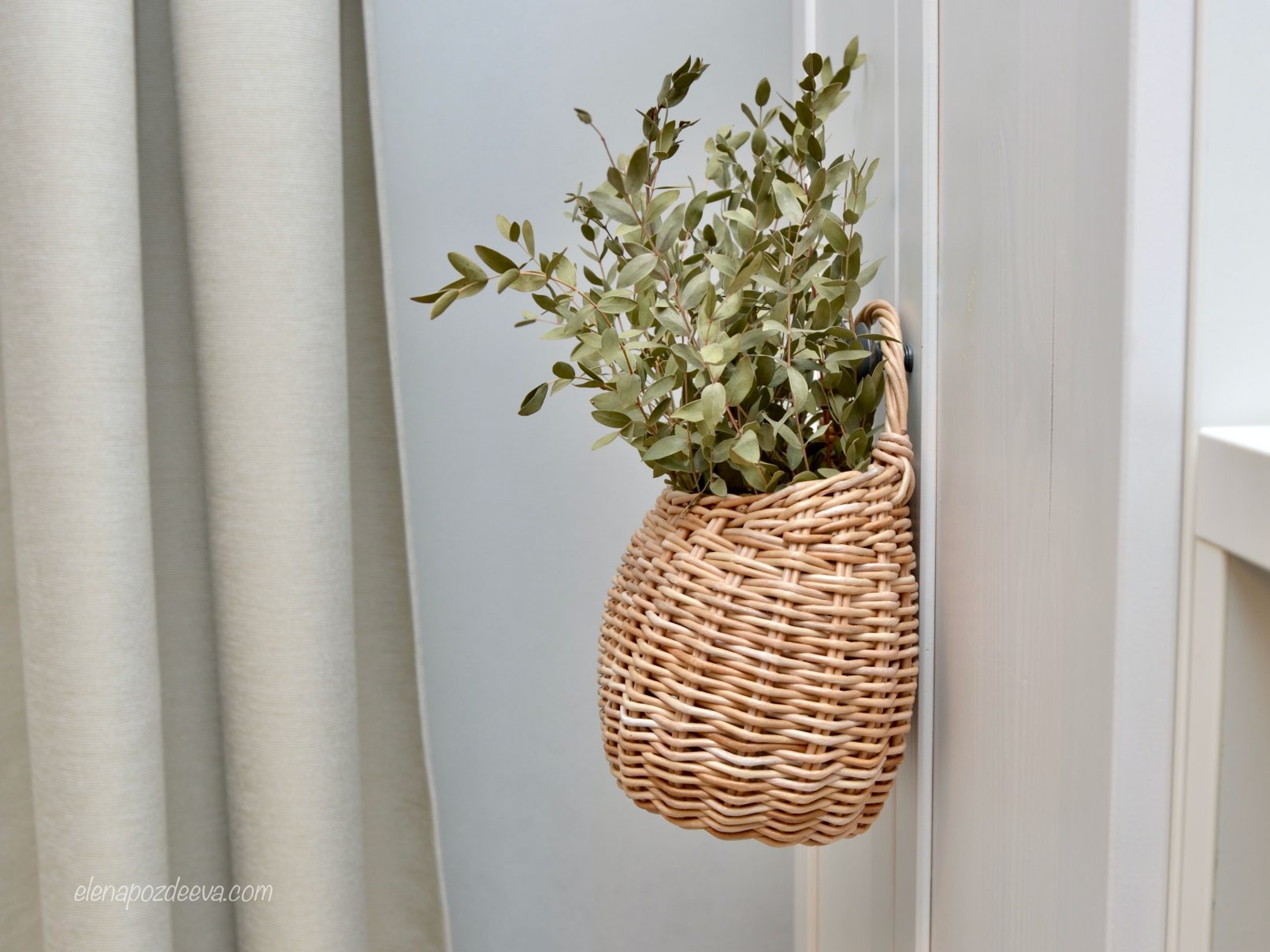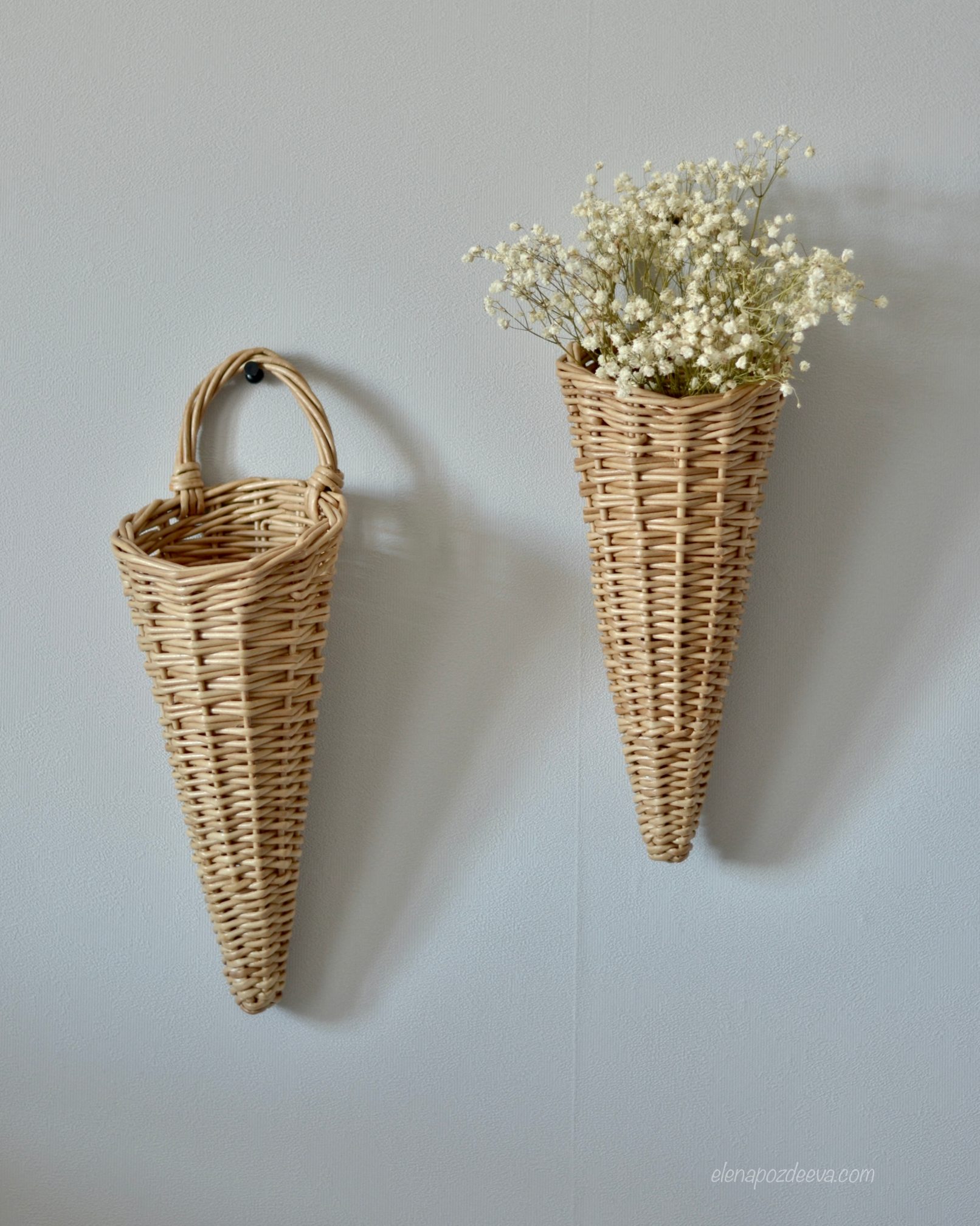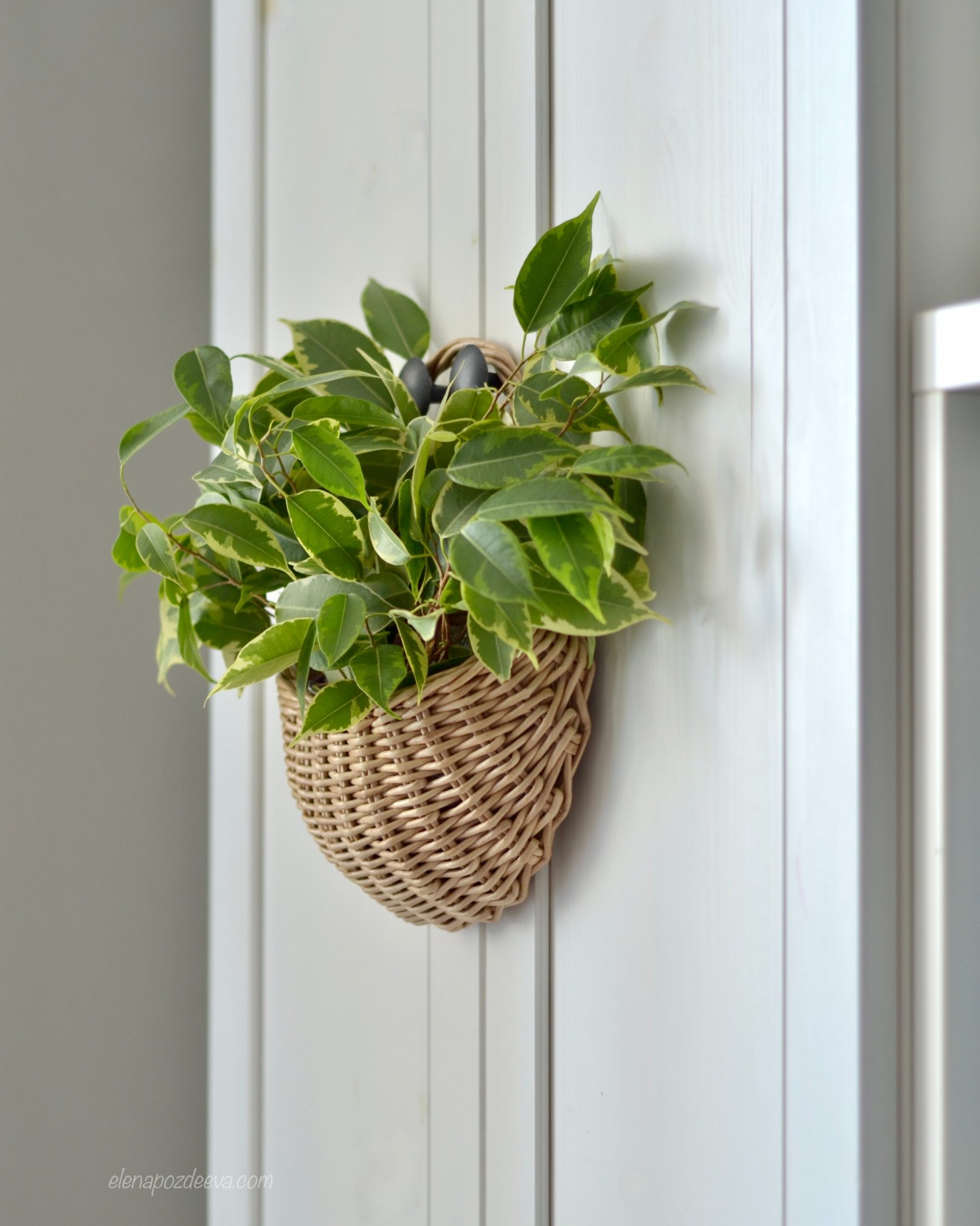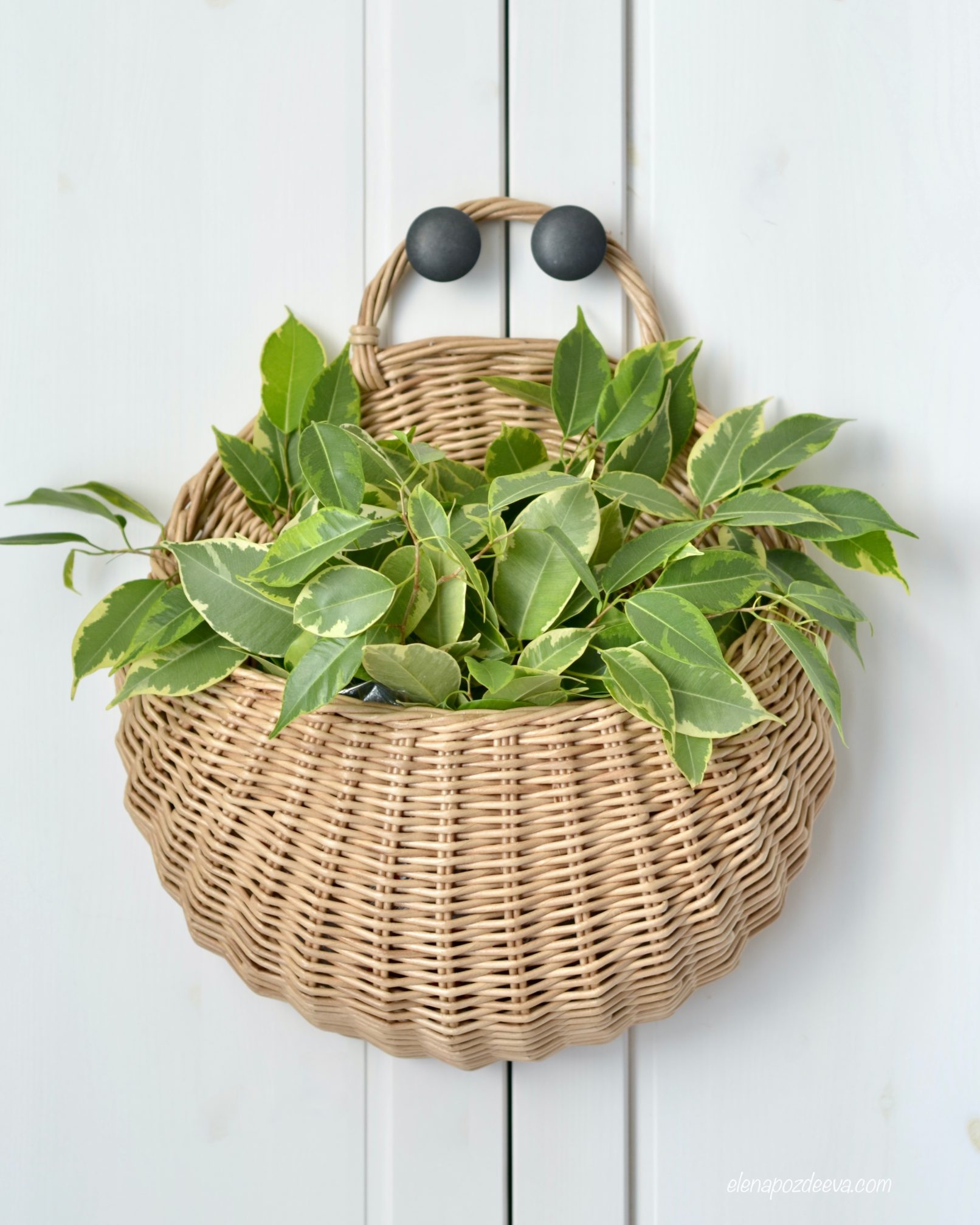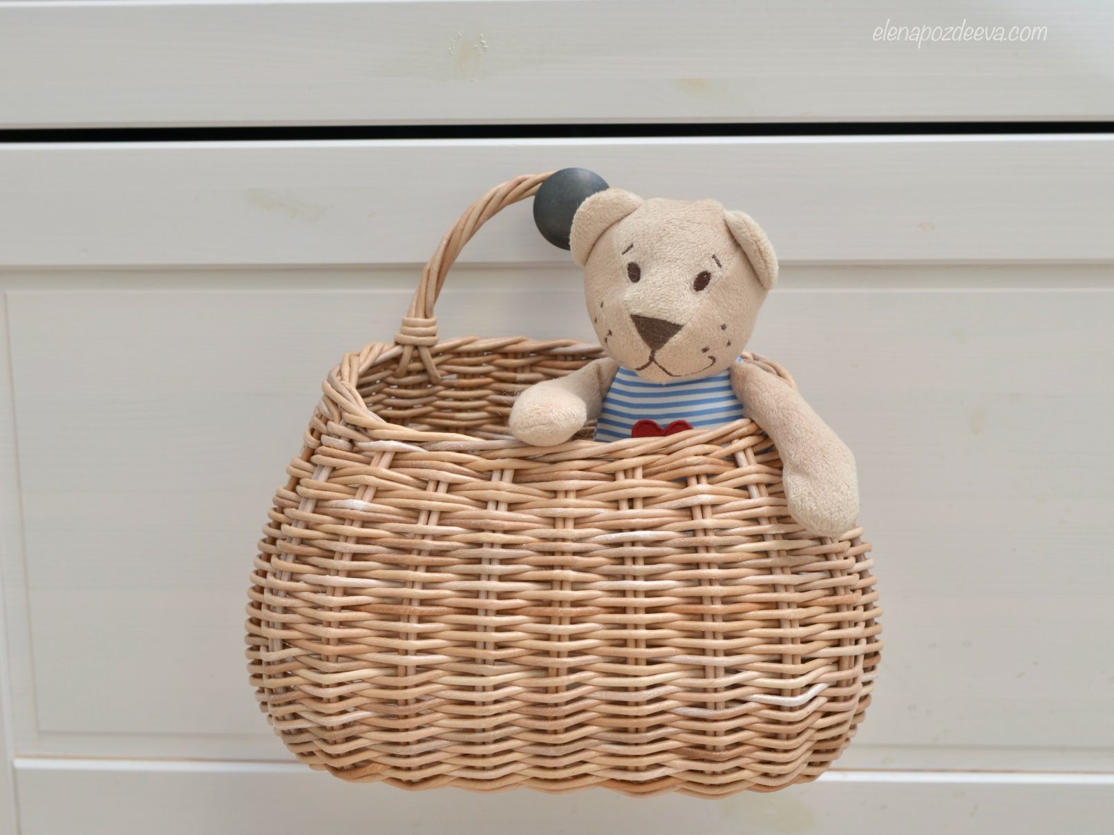 Использование такой подвесной корзины возможно в декоративных целях: например, для сухоцветов, в ванной — для расчесок и других мелочей, в детской — для игрушек и т.д.