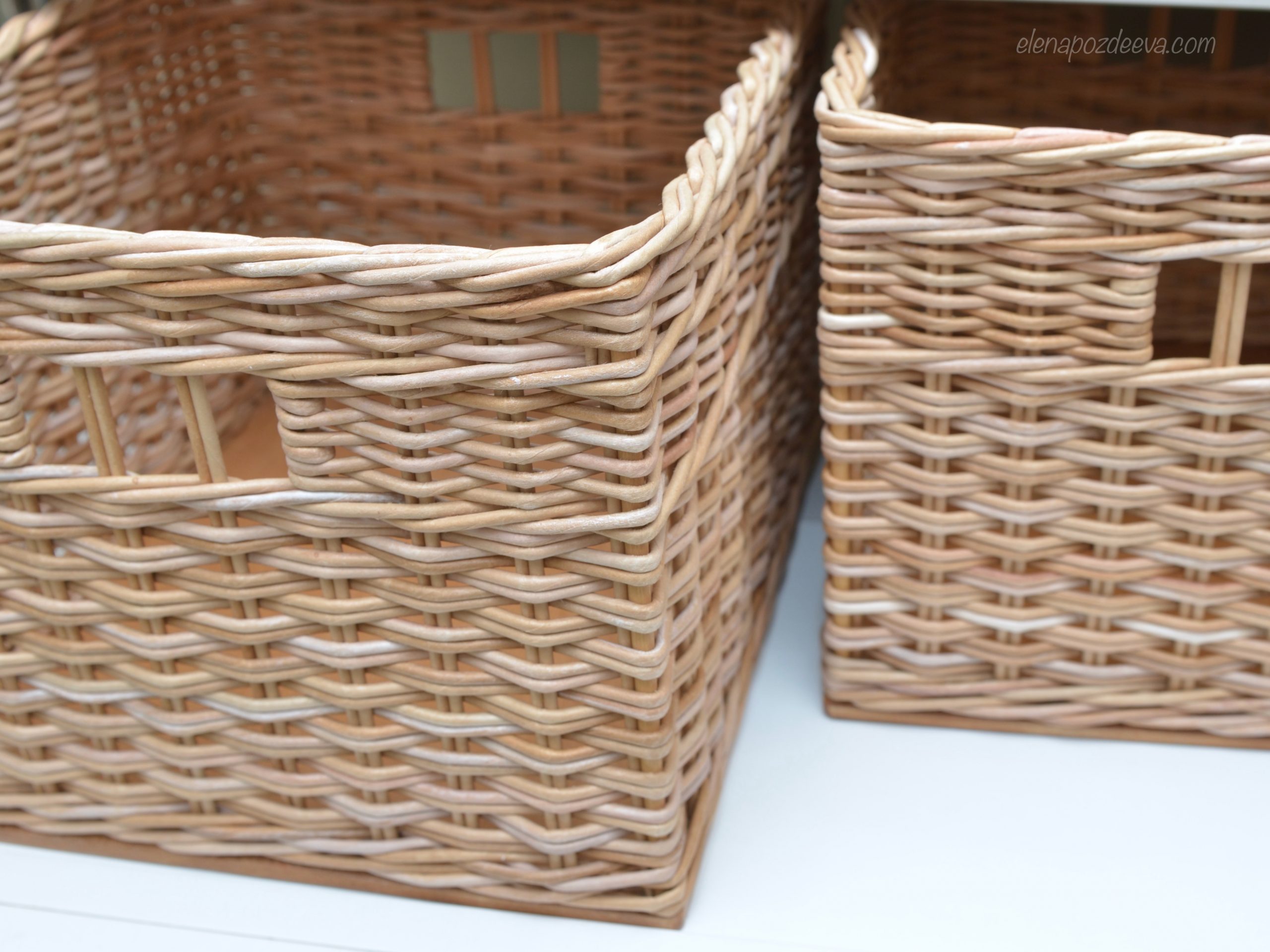 Набор из четырех коробов с фанерным дном для организации хранения на открытых полках шкафа