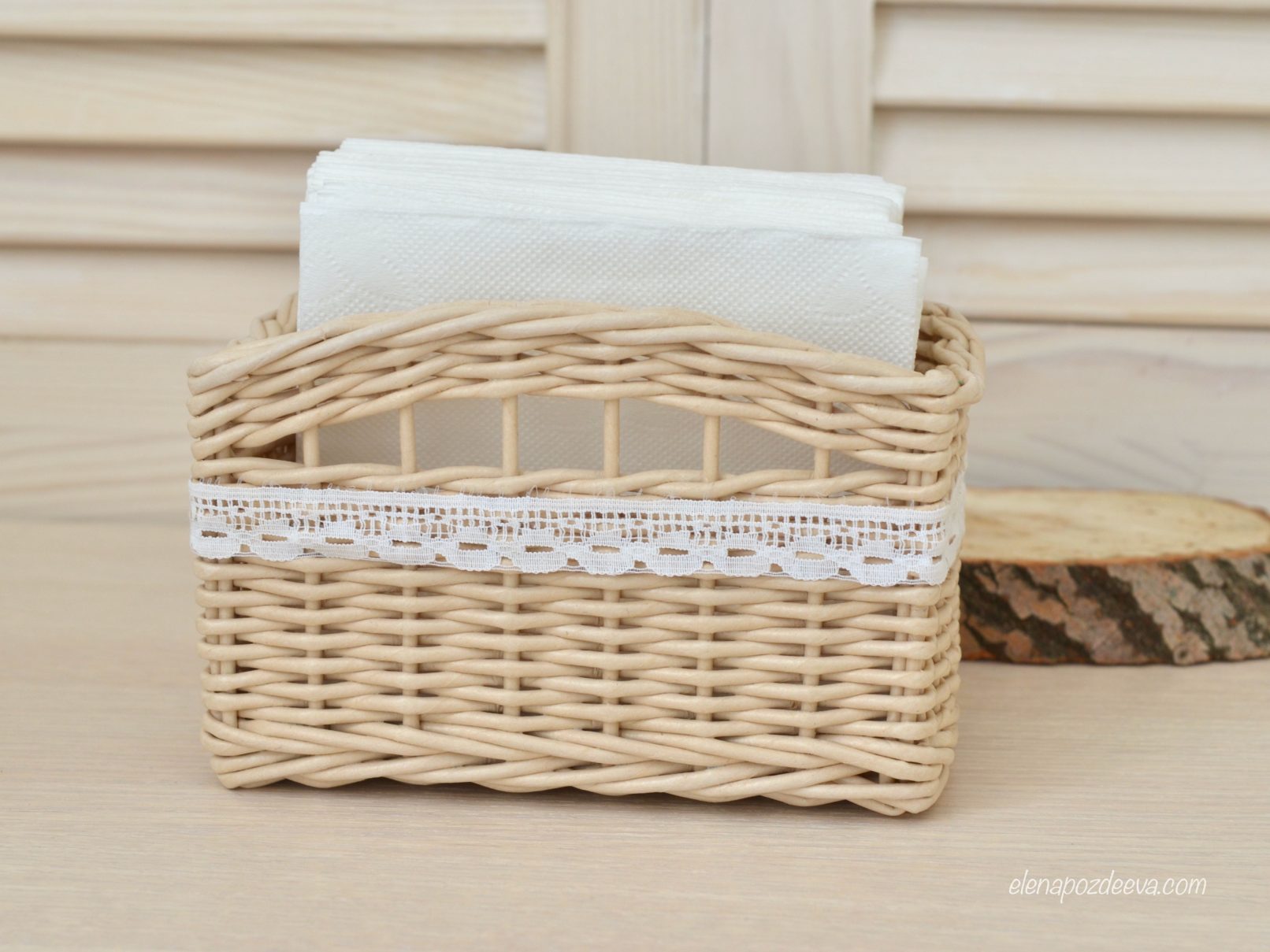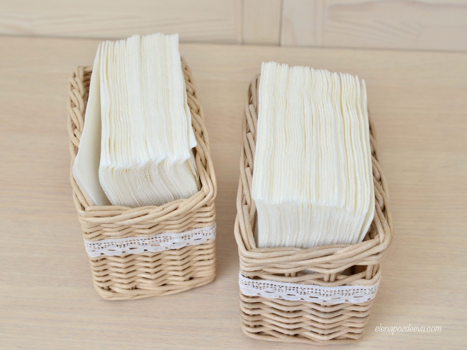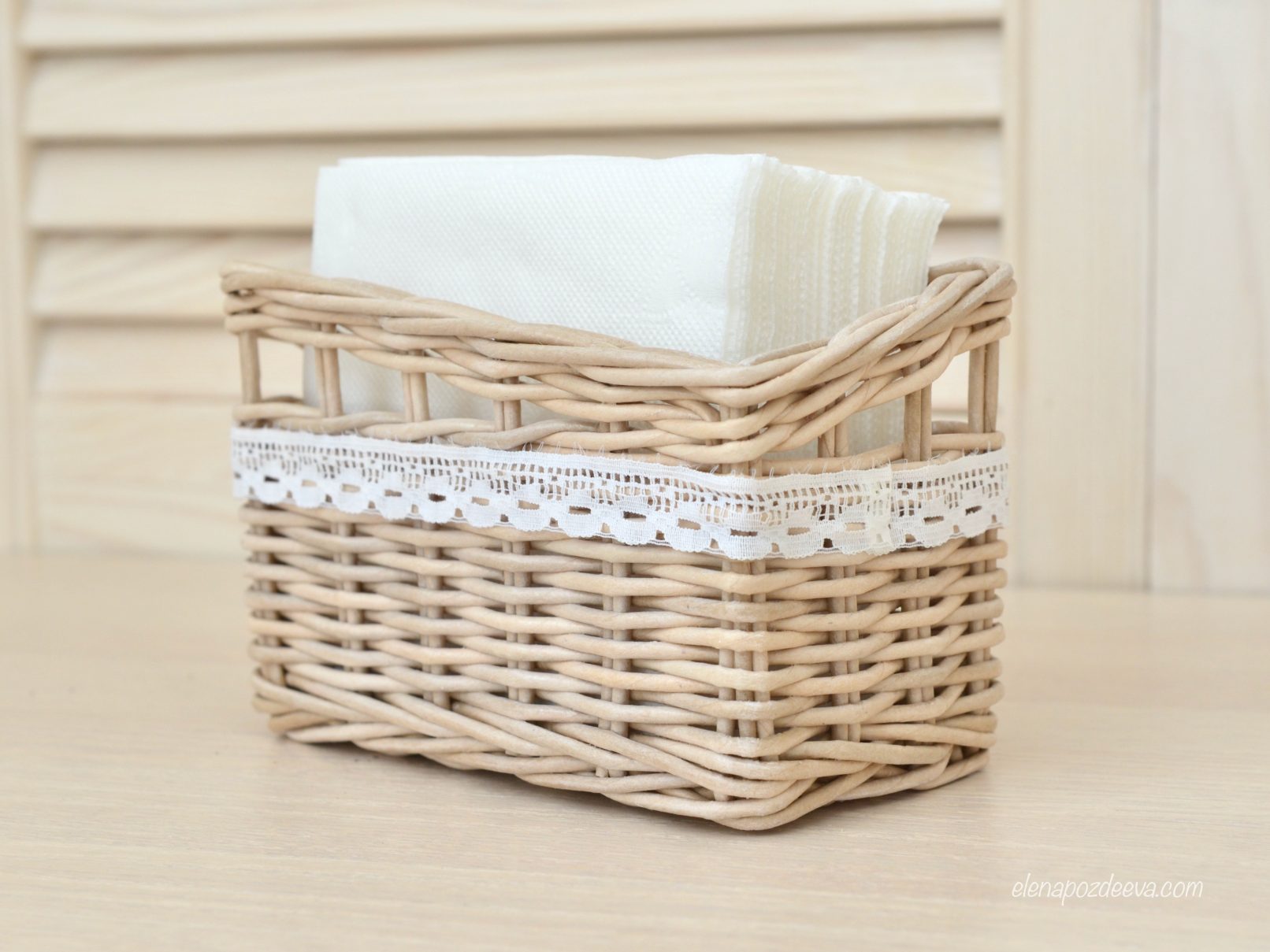 Материалы: газетная бумага без печати, водная морилка, акриловый лак, кружевная тесьма