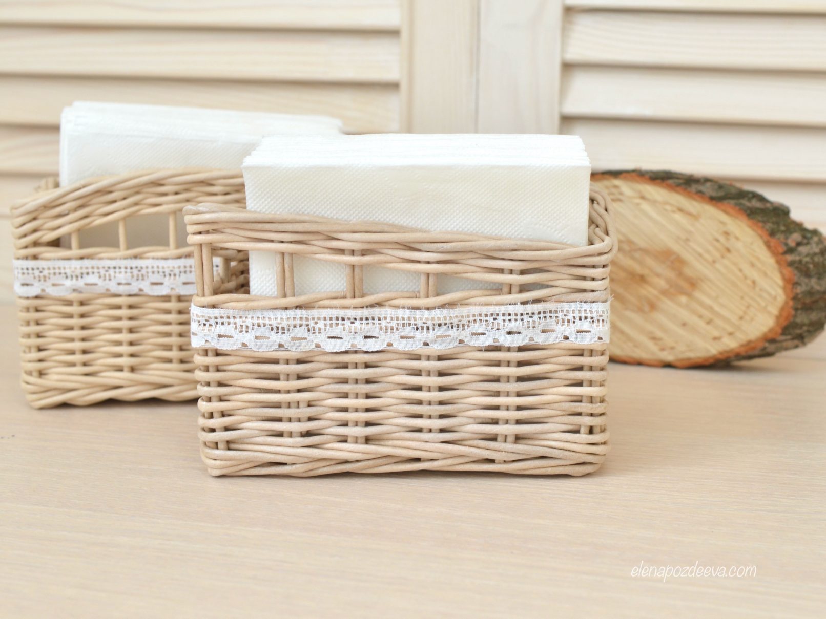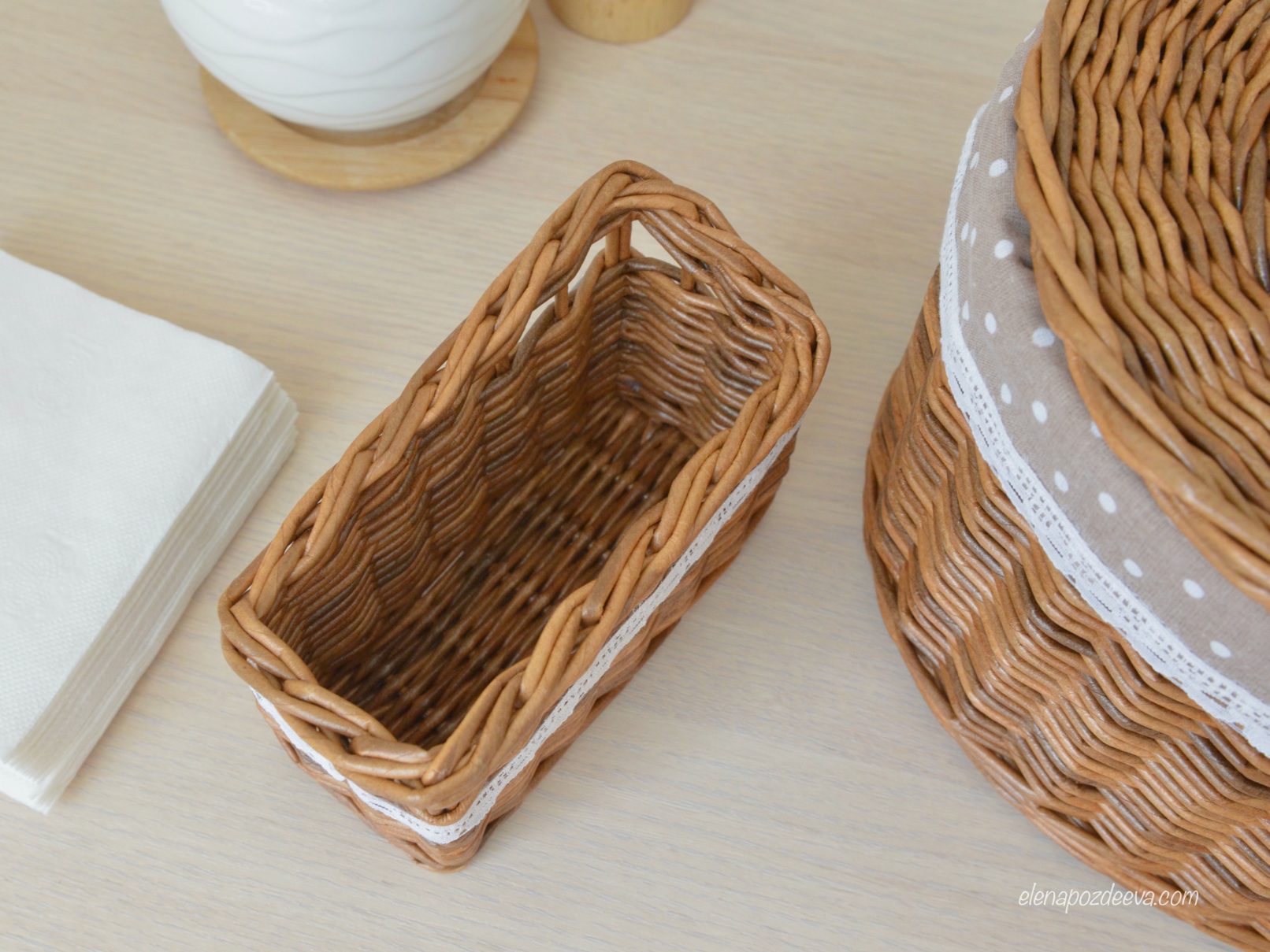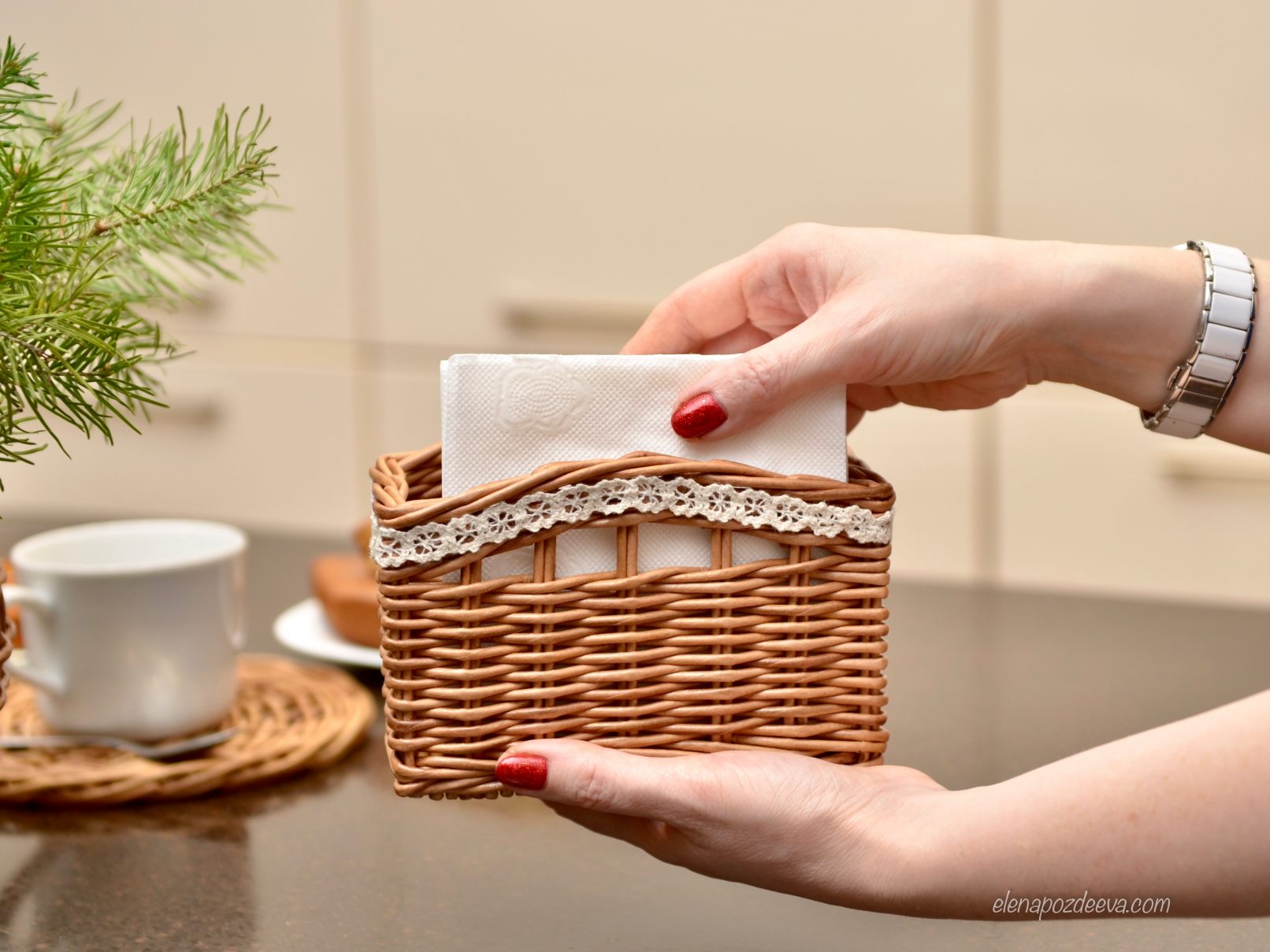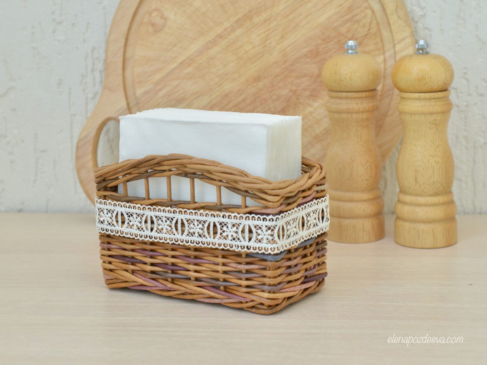 Материалы: газетная бумага без печати, водная морилка, акриловый лак, кружевная тесьма