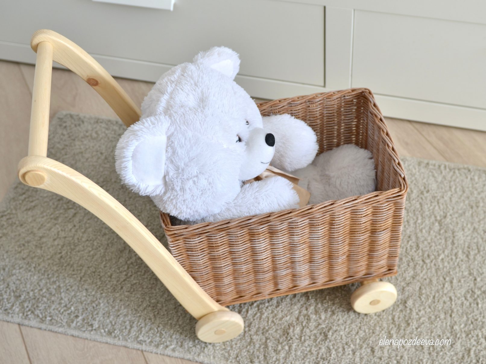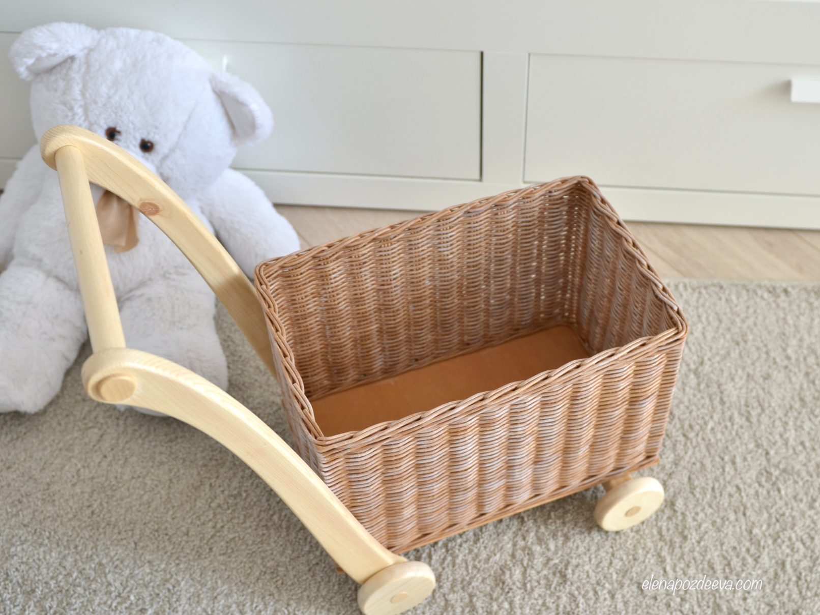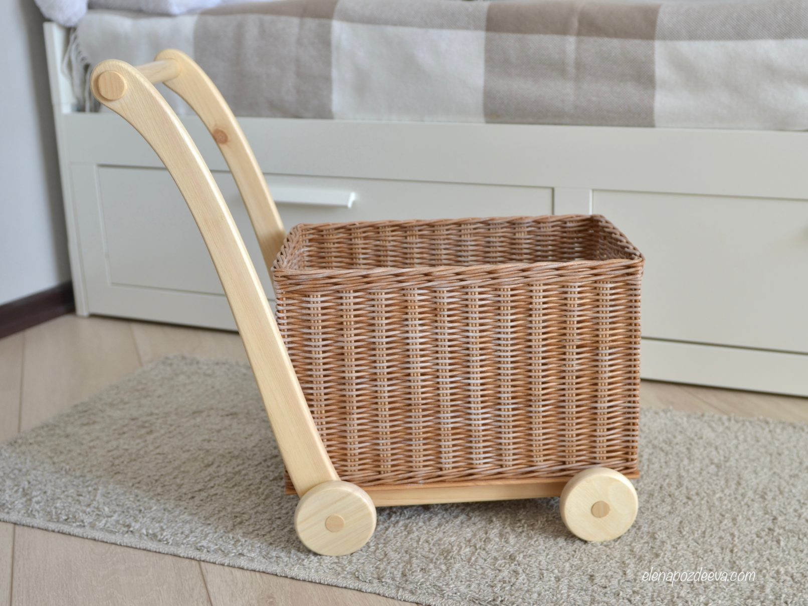 Тележка на деревянных колесах с удобной для ребенка ручкой